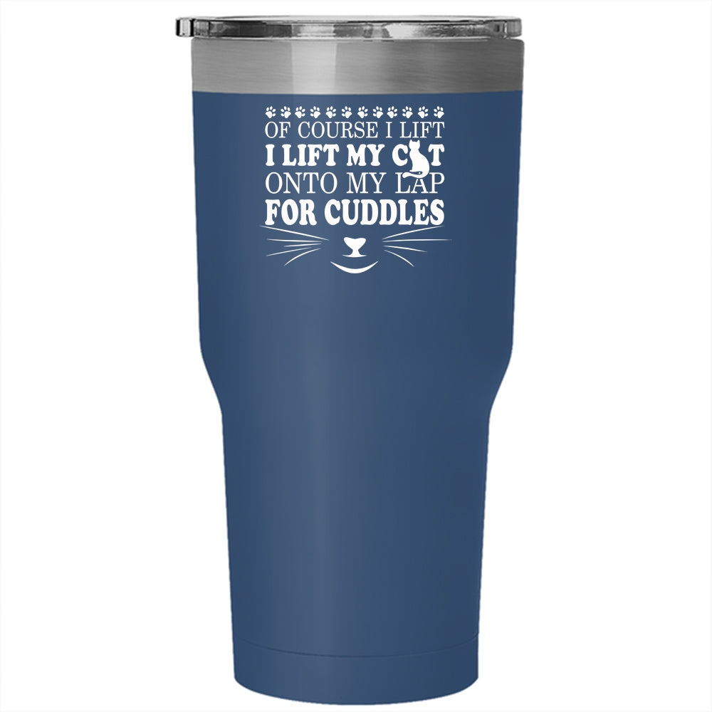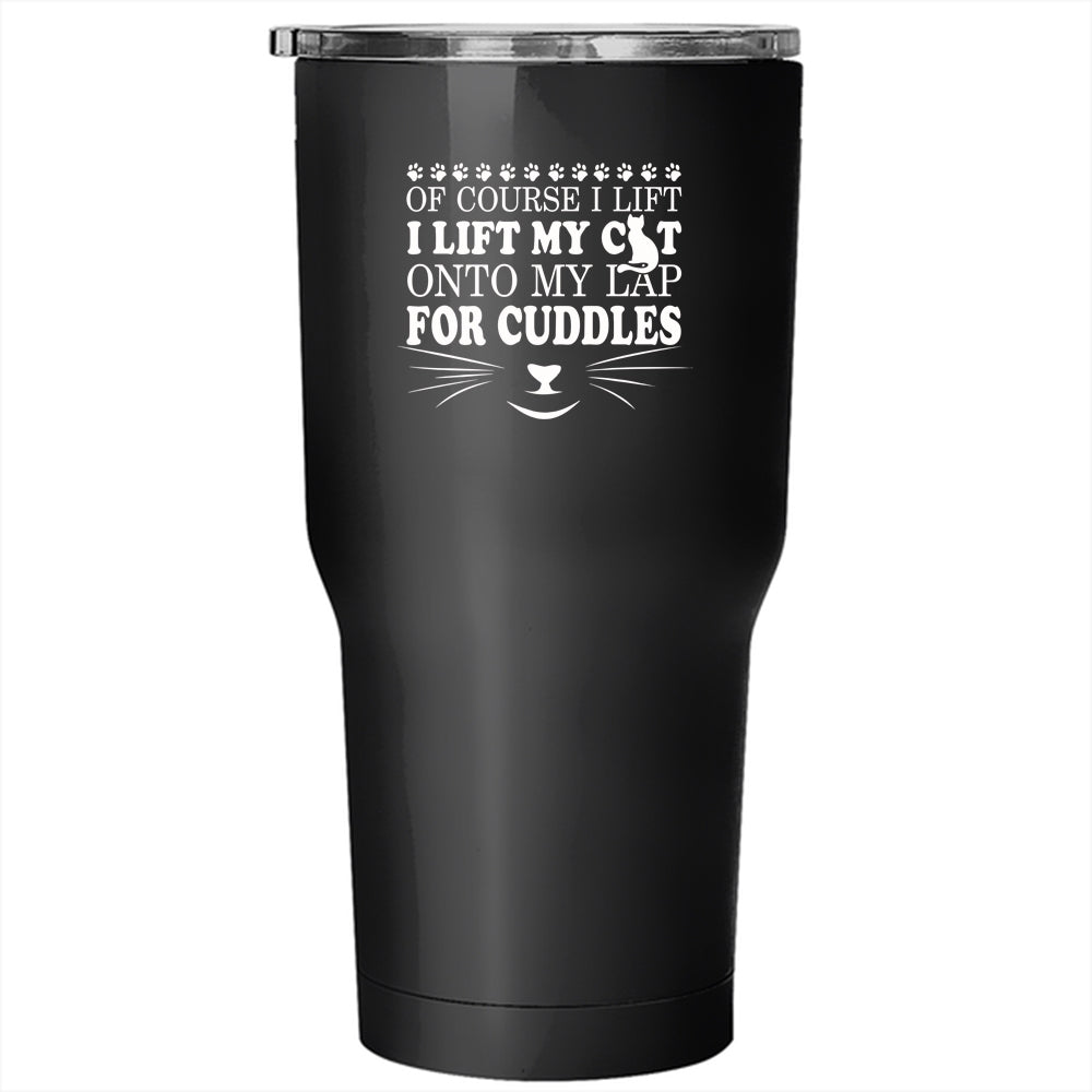 I Lift My Cat Onto My Lap For Cuddles Tumbler 30 oz Stainless Steel, Cute Cat Owner Travel Mug