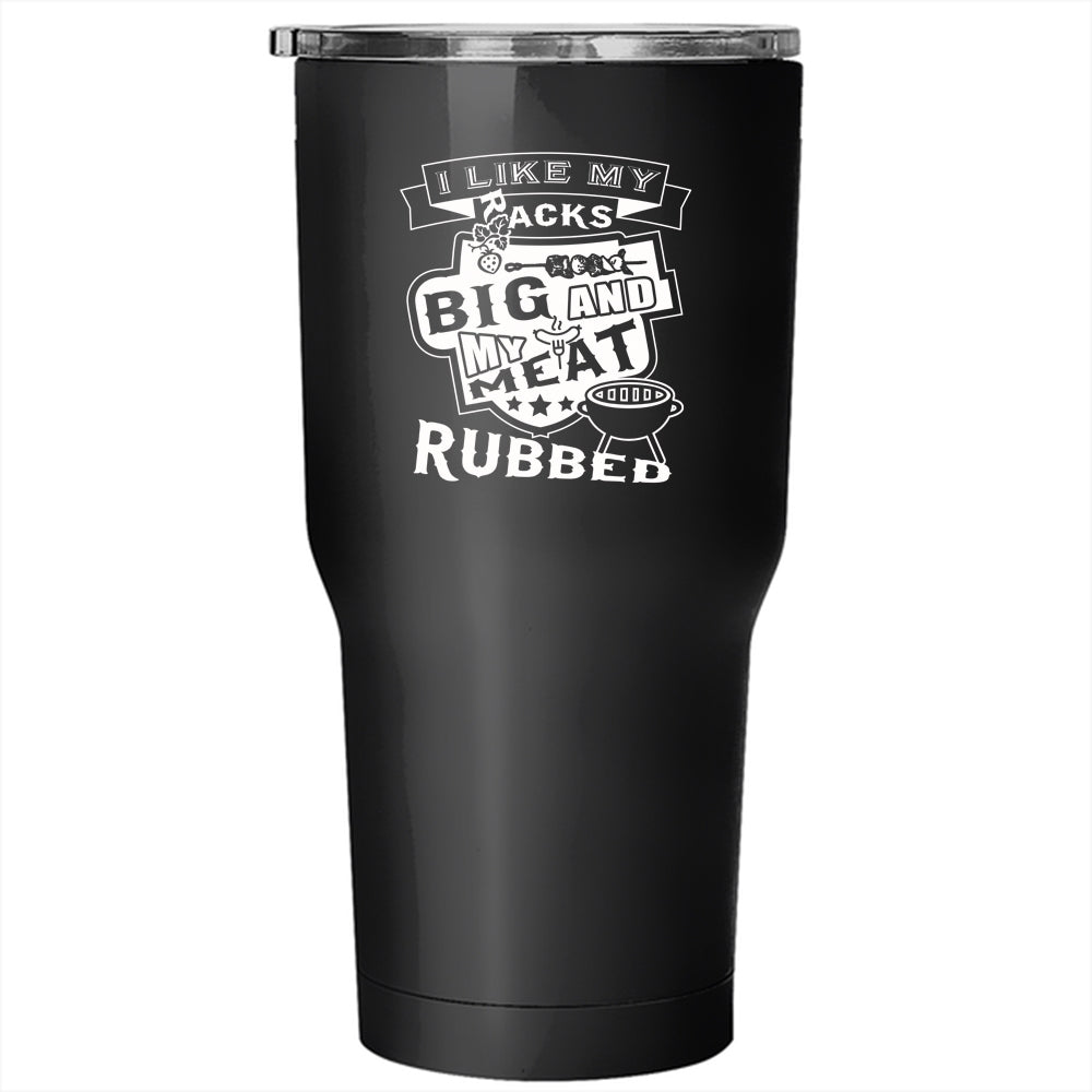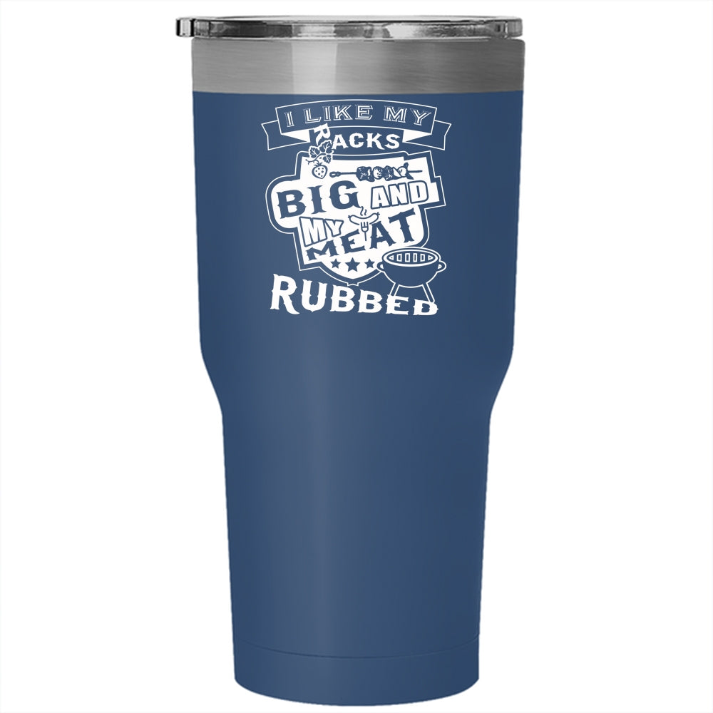 I Like My Racks Big And My Meat Rubbed Tumbler 30 oz Stainless Steel, Funny Barbecue Travel Mug
