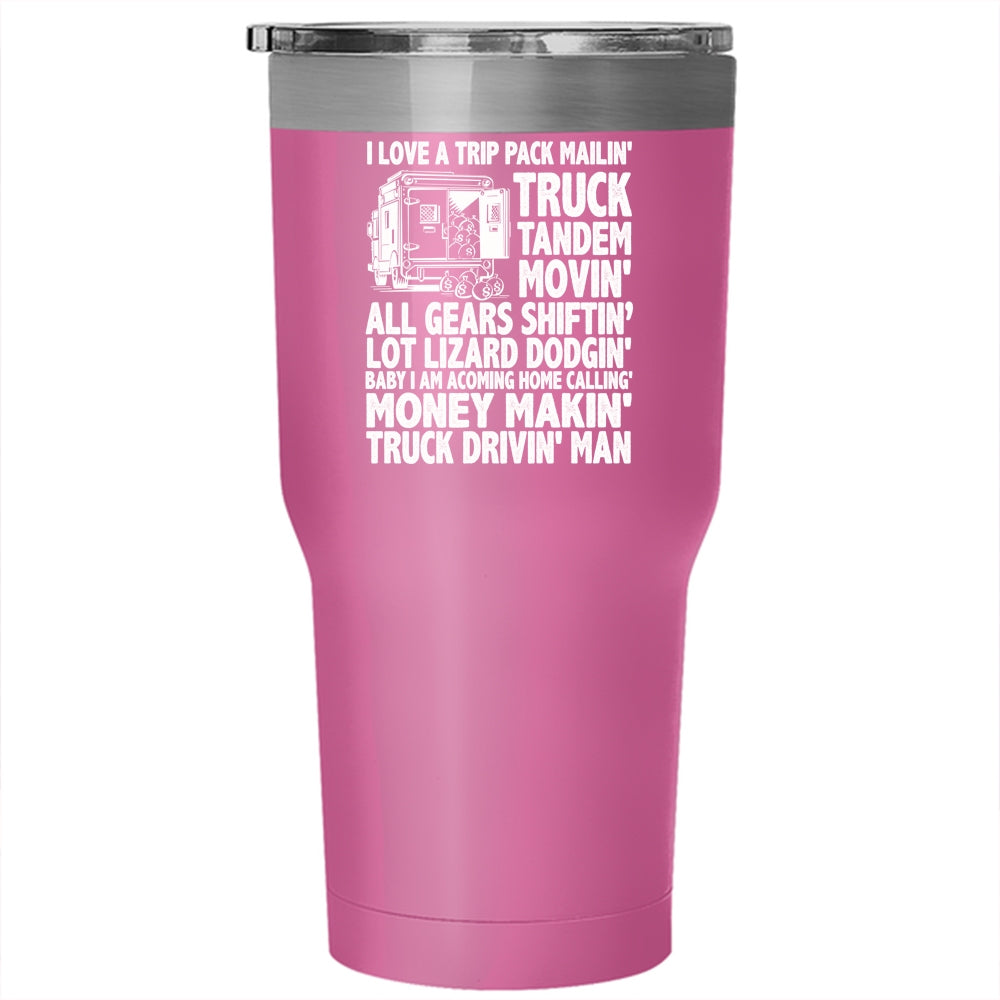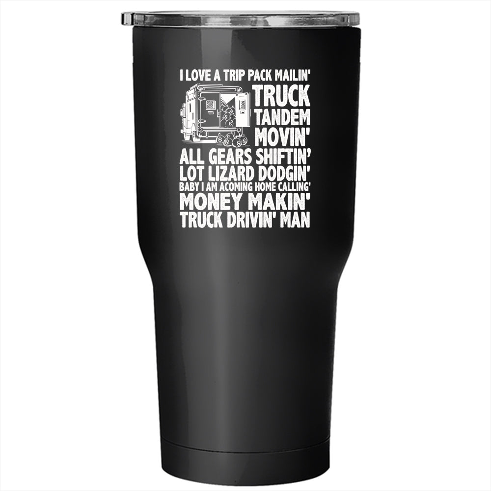 I Love A Trip Pack Mailing Truck Tandem Tumbler 30 oz Stainless Steel, Truck Driving Man Travel Mug