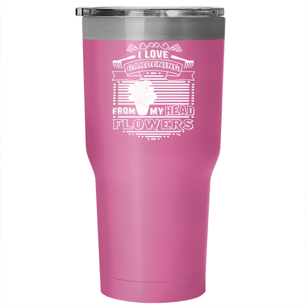 I Love Gardening From My Head Flowers Tumbler 30 oz Stainless Steel, Cute Gardener Travel Mug