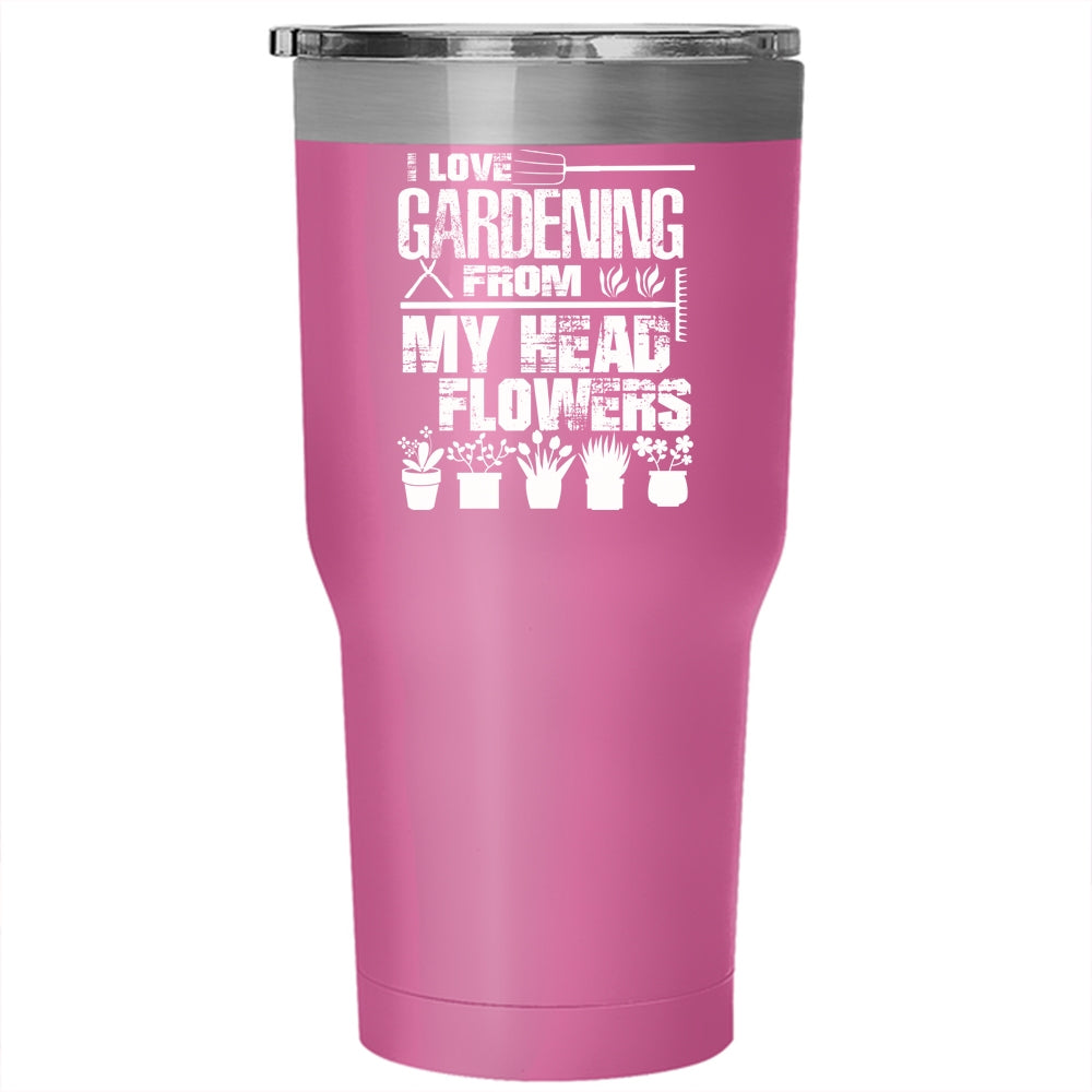 I Love Gardening From My Head Flowers Tumbler 30 oz Stainless Steel, Cute Travel Mug
