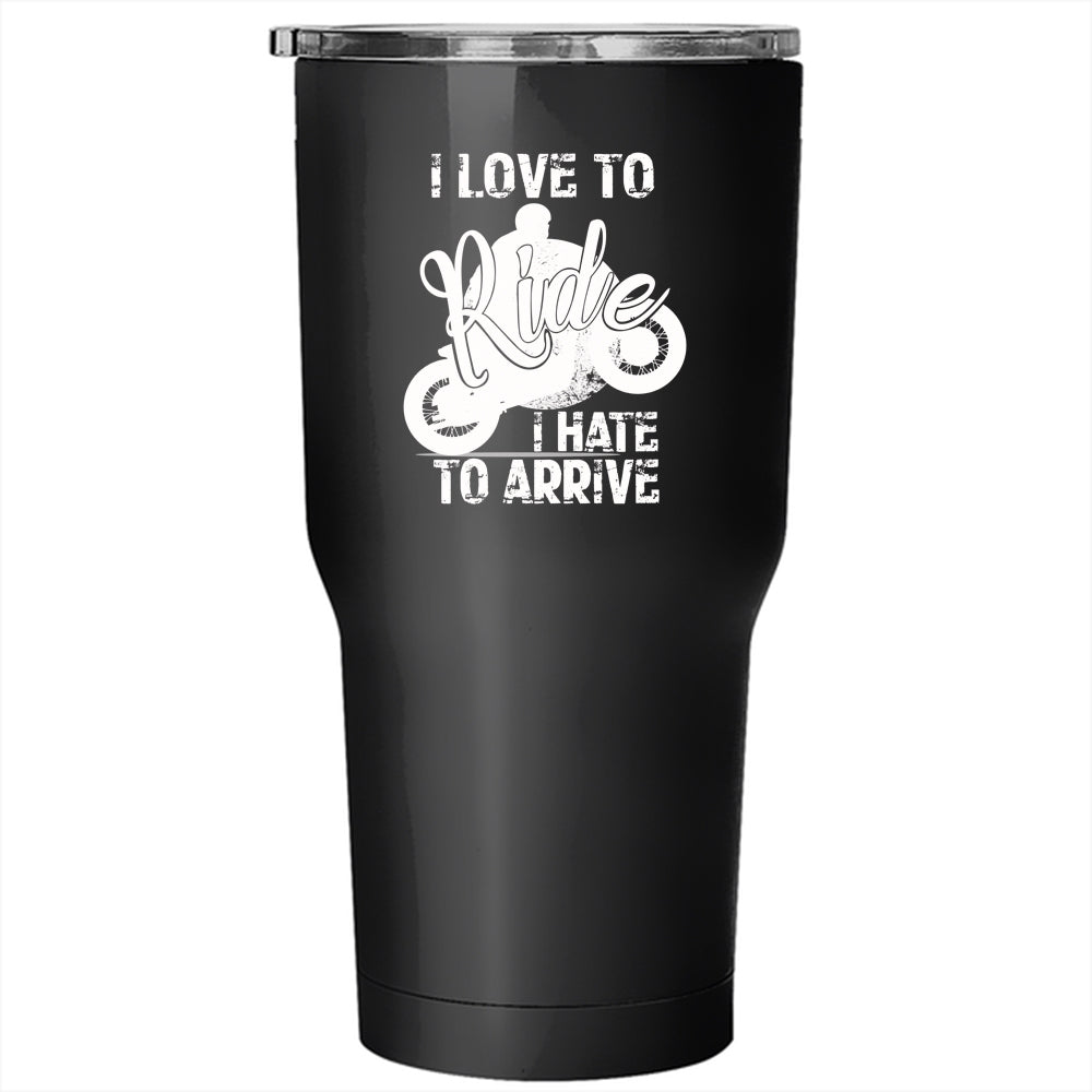 I Love To Ride Tumbler 30 oz Stainless Steel, I Hate To Arrive Travel Mug