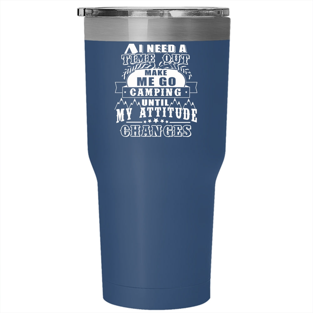 I Need A Time Out Make Me Go Camping Tumbler 30 oz Stainless Steel, Funny Camping Travel Mug