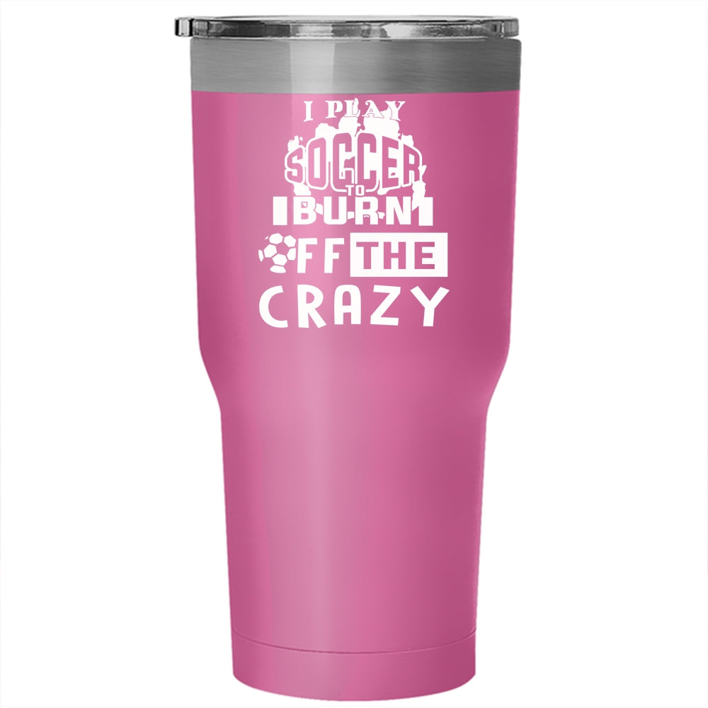 I Play Soccer To Burn Off The Crazy Tumbler 30 oz Stainless Steel, Crazy Soccer Player Travel Mug