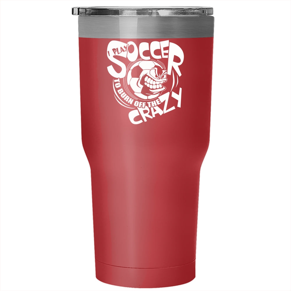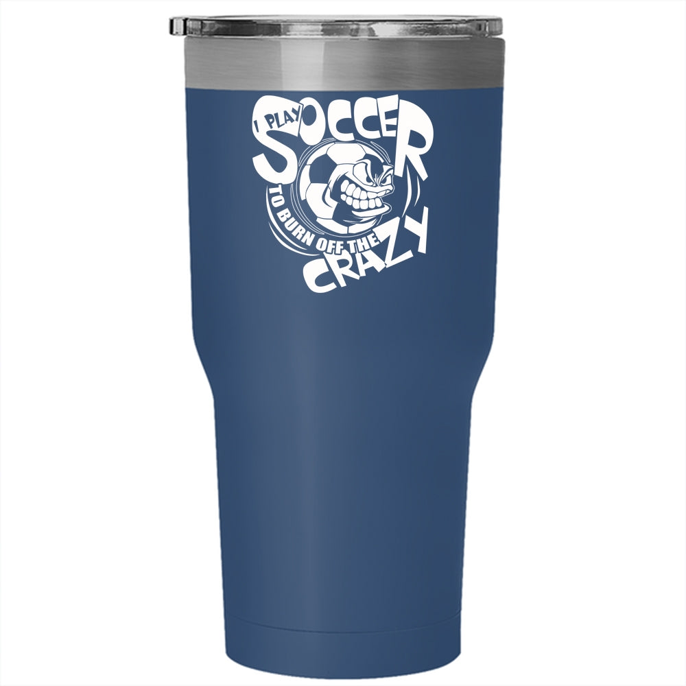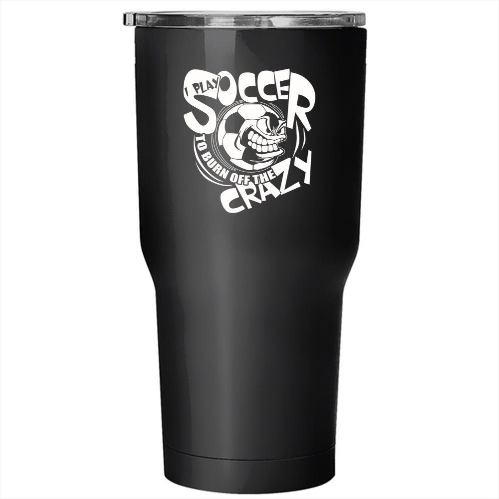 I Play Soccer To Burn Off The Crazy Tumbler 30 oz Stainless Steel, Funny Soccer Travel Mug