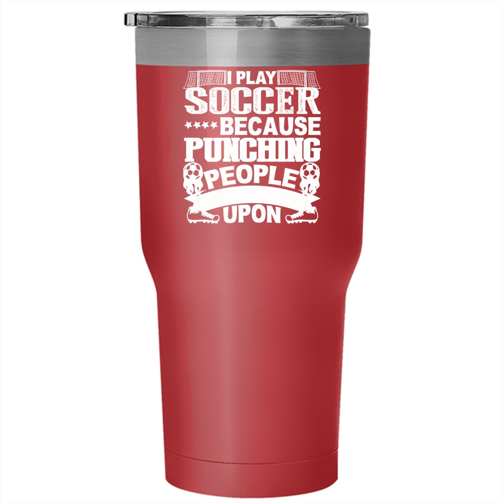 I Play Soccer Tumbler 30 oz Stainless Steel, Awesome Soccer Player Travel Mug