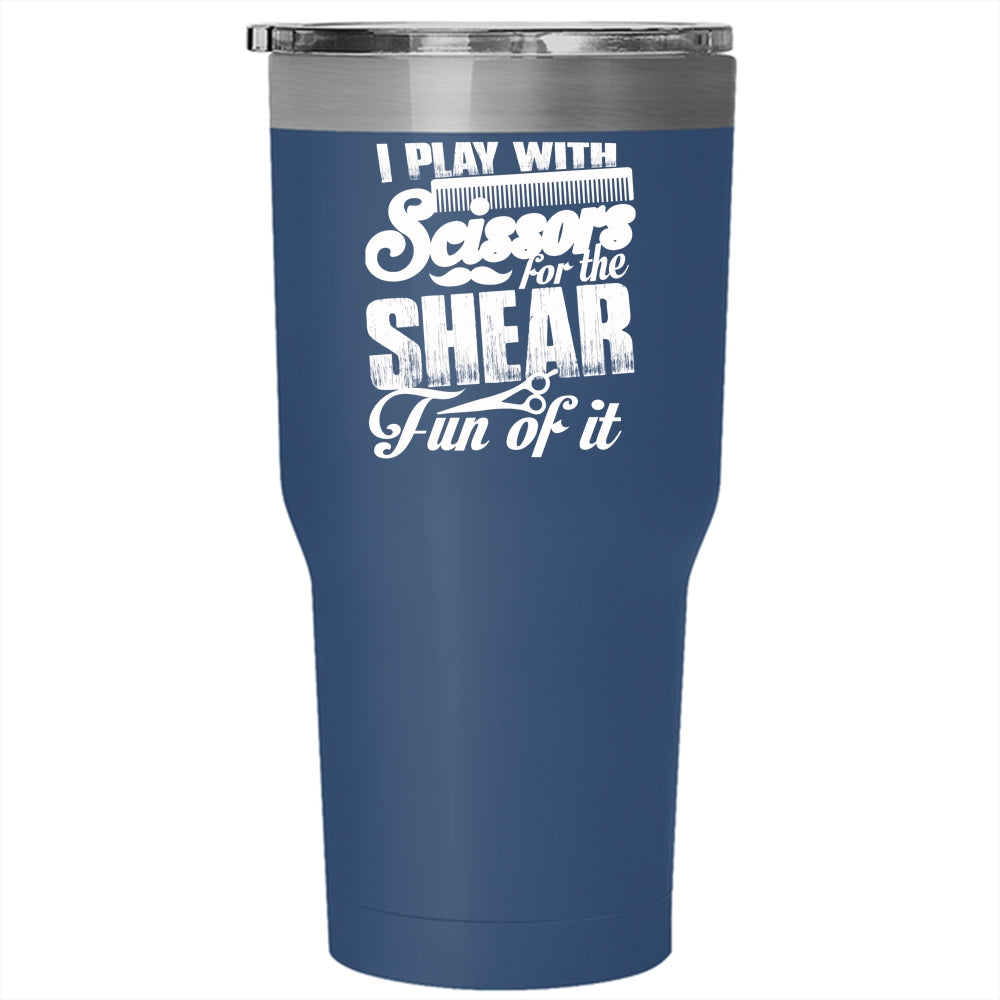 I Play With Scissors For The Shear Tumbler 30 oz Stainless Steel, Cool Hair Stylist Travel Mug