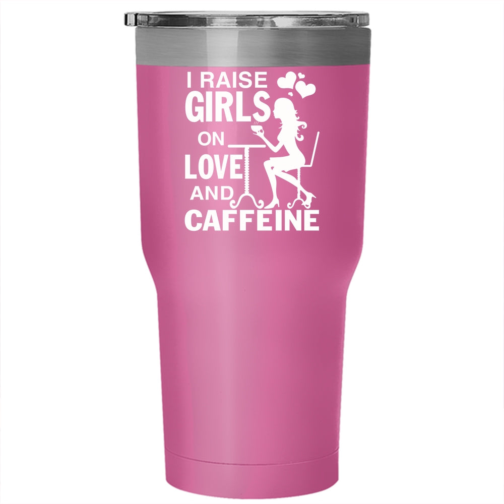 I Raise Girls On Love And Caffeine Tumbler 30 oz Stainless Steel, Cute Girls Travel Mug