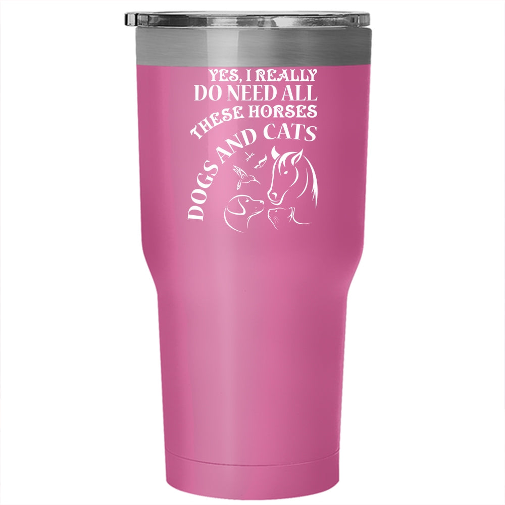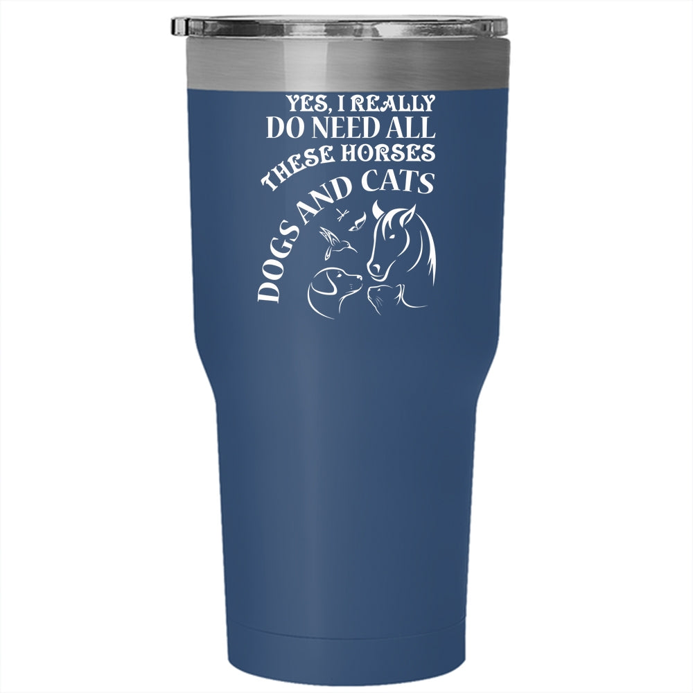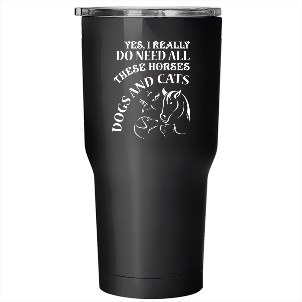 I Really Do Need All These Horses Tumbler 30 oz Stainless Steel, Dogs And Cats Travel Mug