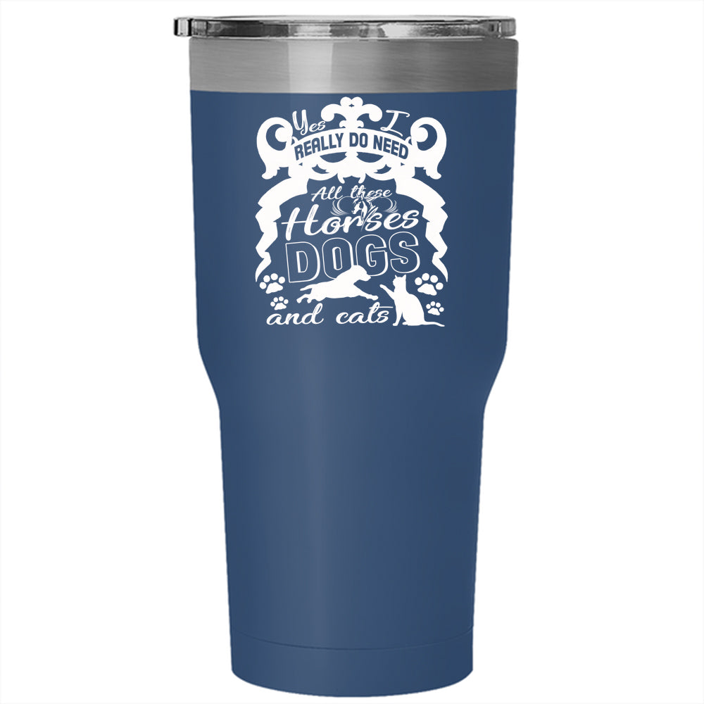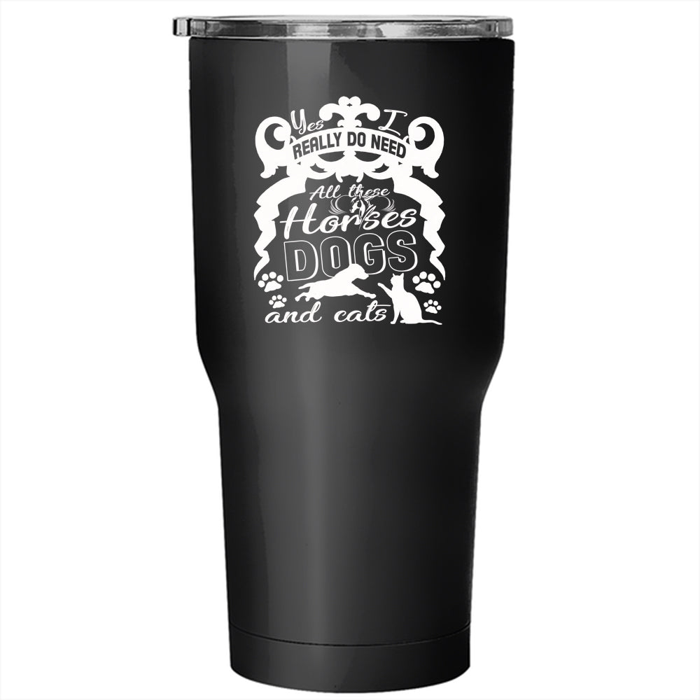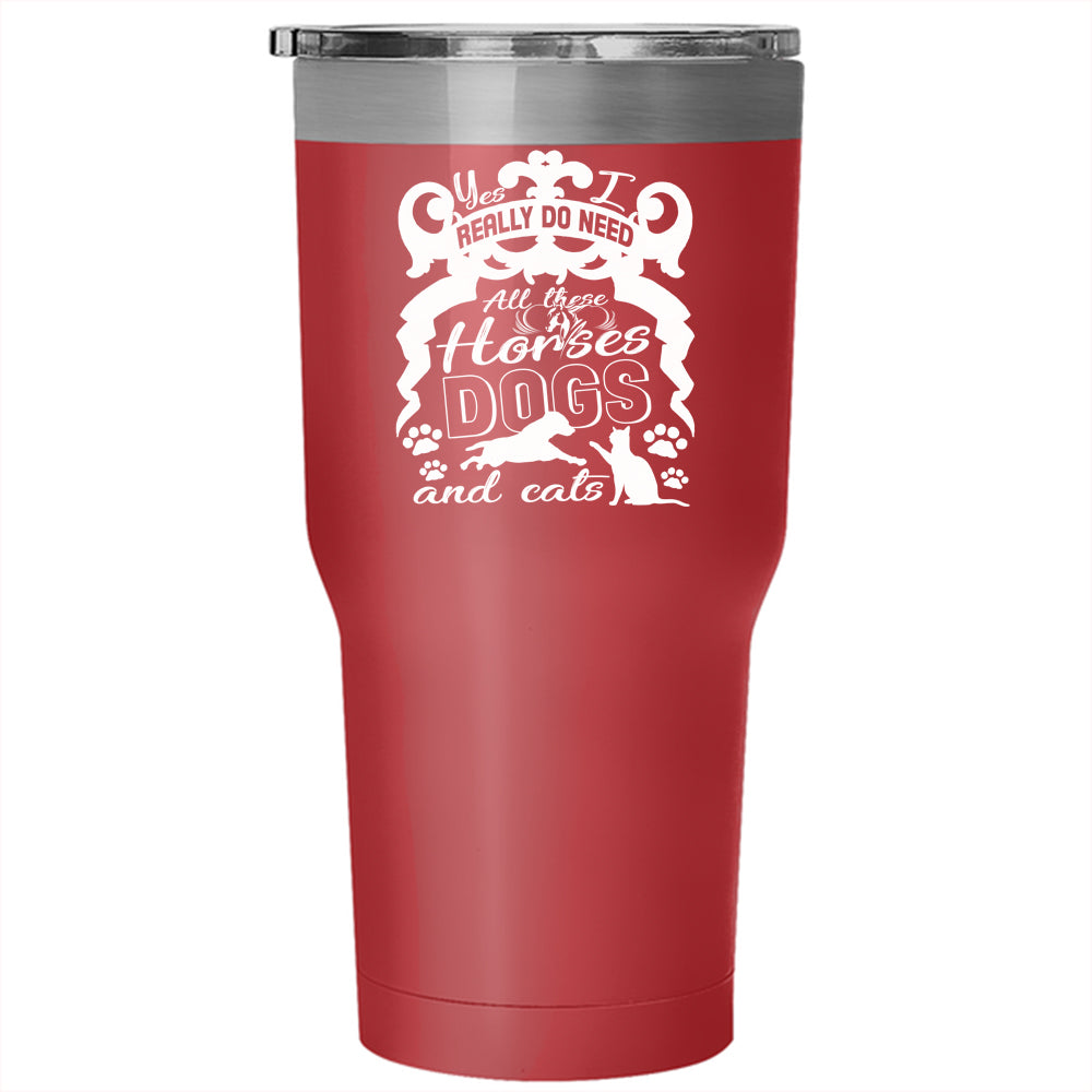 I Really Do Need Tumbler 30 oz Stainless Steel, All These Horses Dogs And Cats Travel Mug