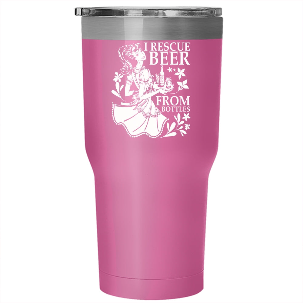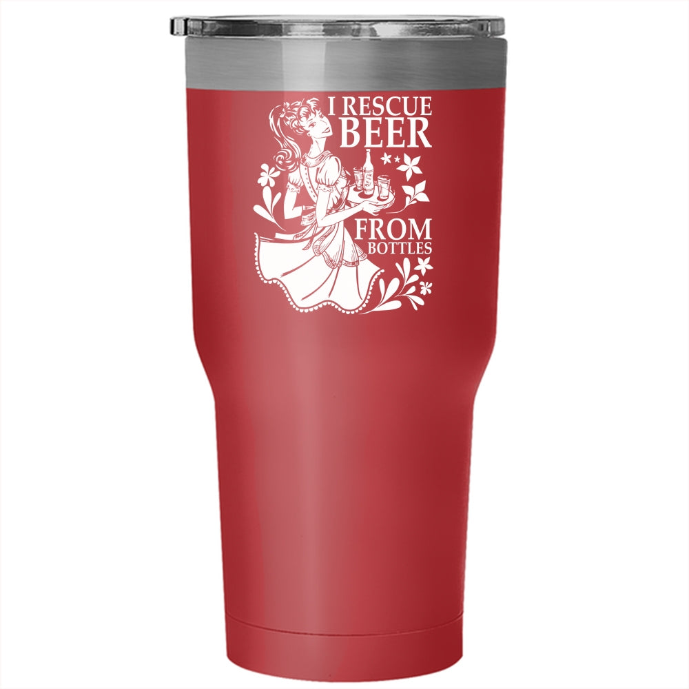 I Rescue Beer From Bottles Tumbler 30 oz Stainless Steel, Cute Beer Drinker Travel Mug
