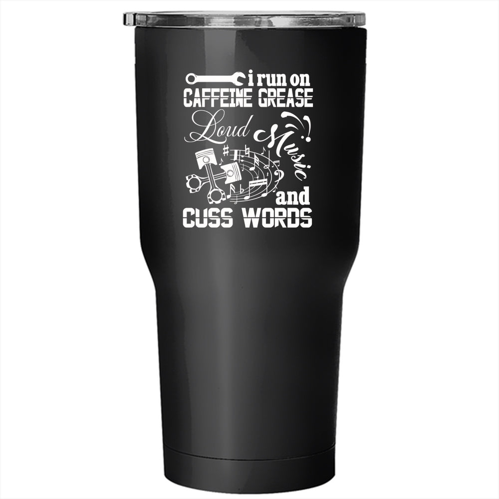 I Run On Caffeine Grease Loud Music Tumbler 30 oz Stainless Steel, Cute Musician Travel Mug