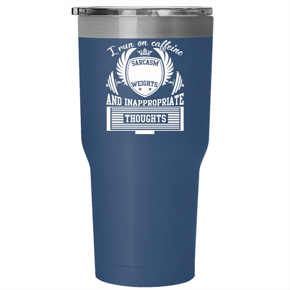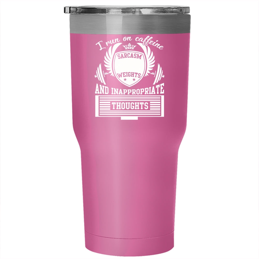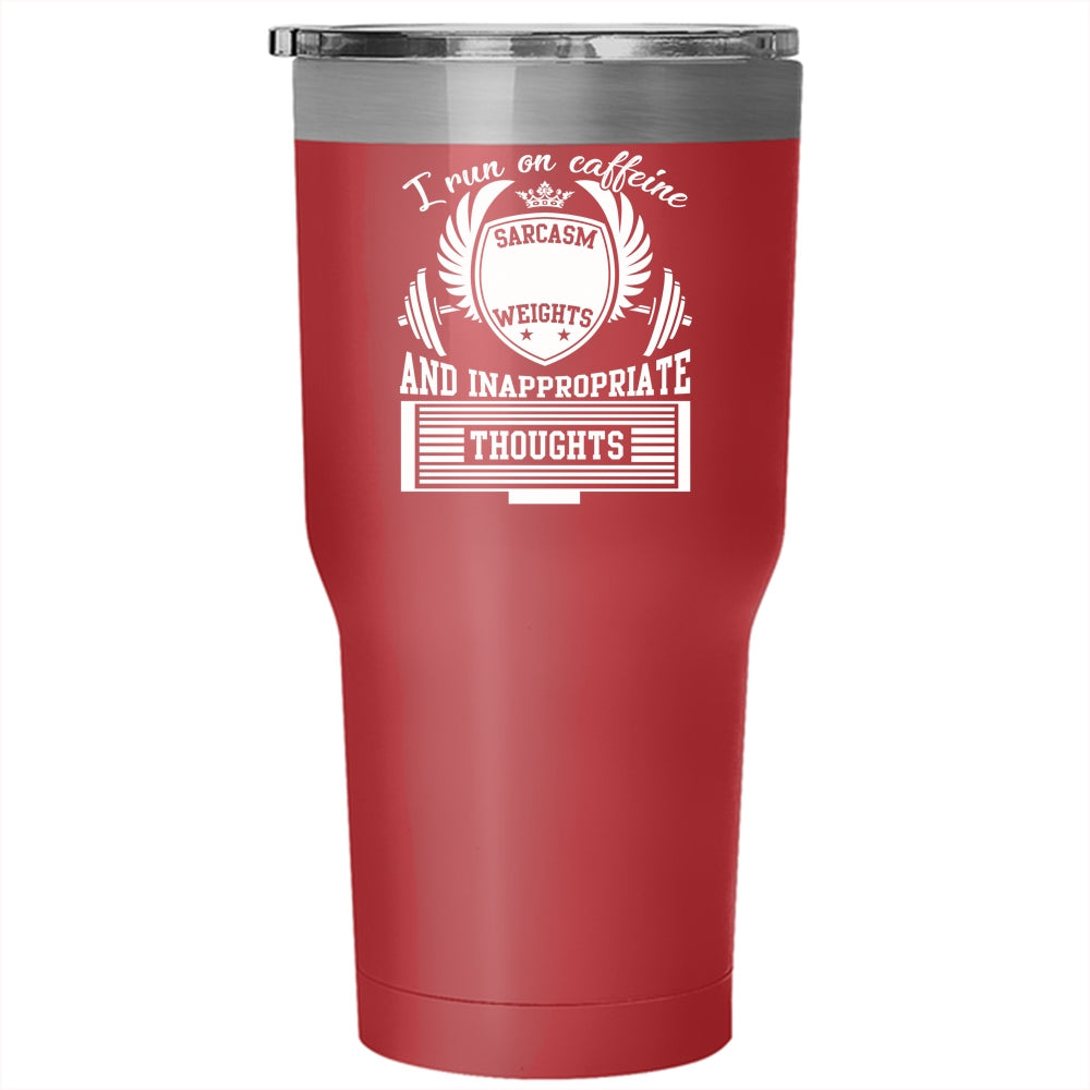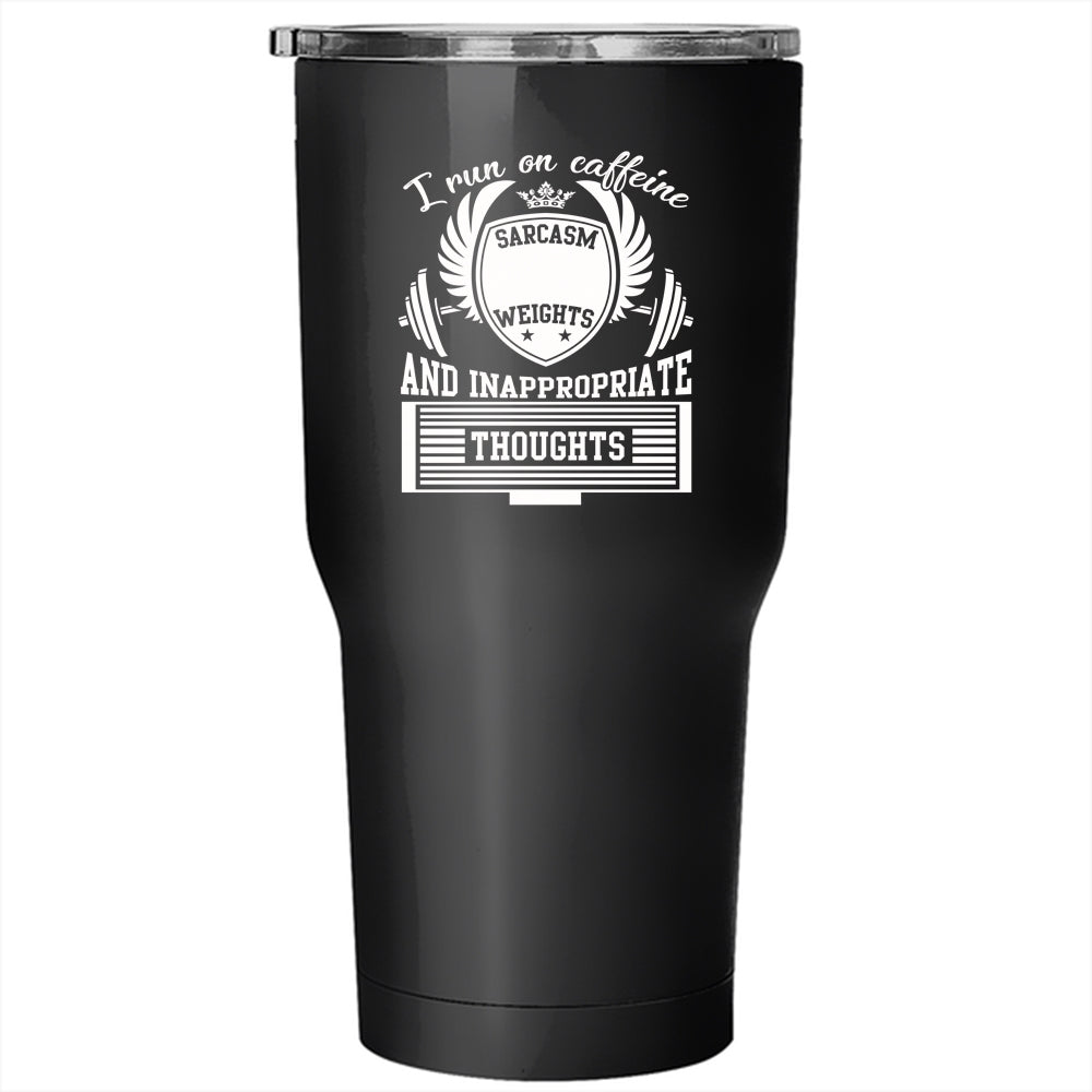 I Run On Caffeine Sarcasm Tumbler 30 oz Stainless Steel, Lifting Weights Travel Mug