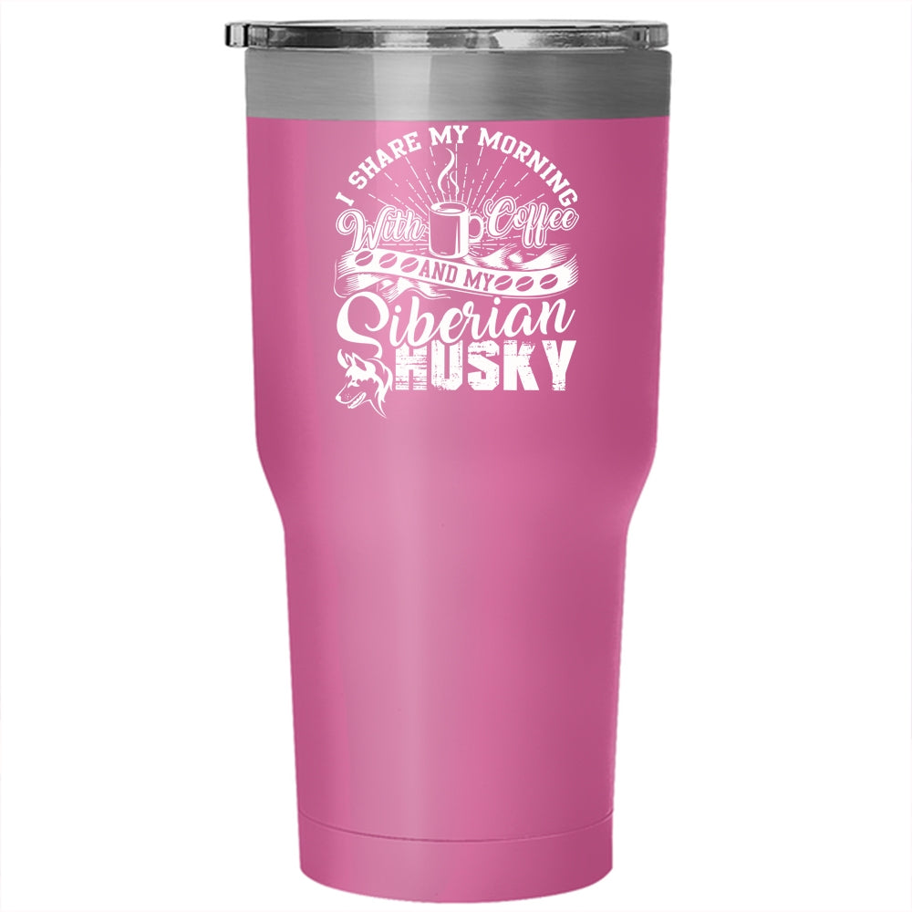 I Share My Morning With Coffee Tumbler 30 oz Stainless Steel, My Siberian Husky Travel Mug