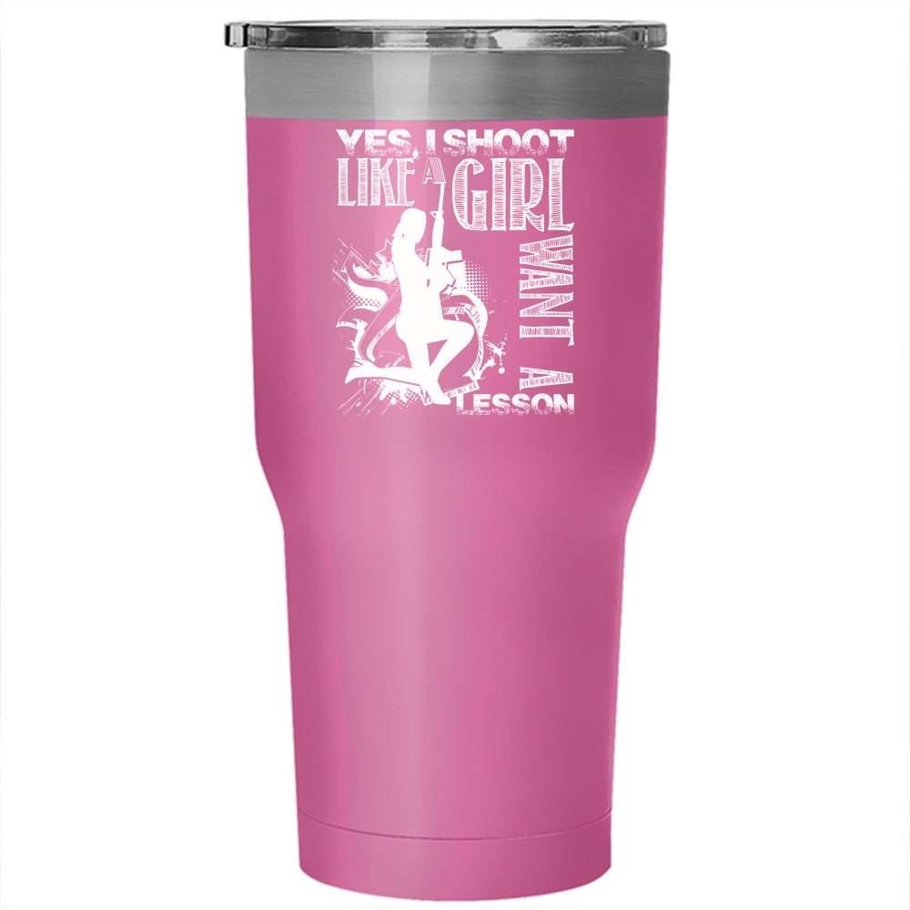 I Shoot Like A Girl Want A Lesson Tumbler 30 oz Stainless Steel, Awesome Girls Travel Mug