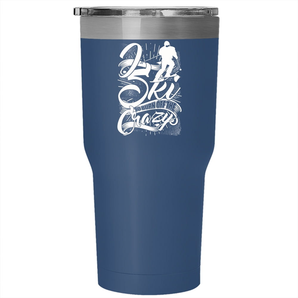 I Sky To Burn Off The Crazy Tumbler 30 oz Stainless Steel, Funny Skiing Travel Mug