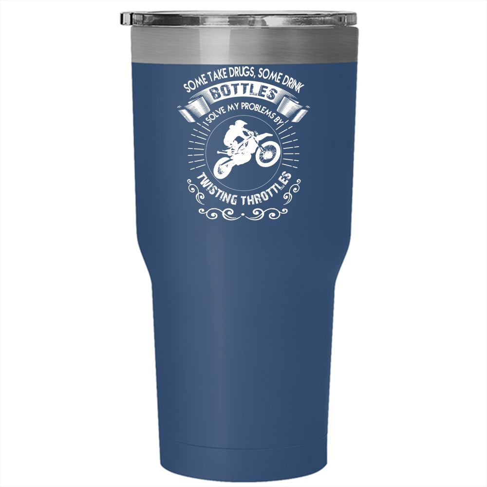 I Solve My Problems By Twisting Throttles Tumbler 30 oz Stainless Steel, Funny Motorcycles Travel Mug