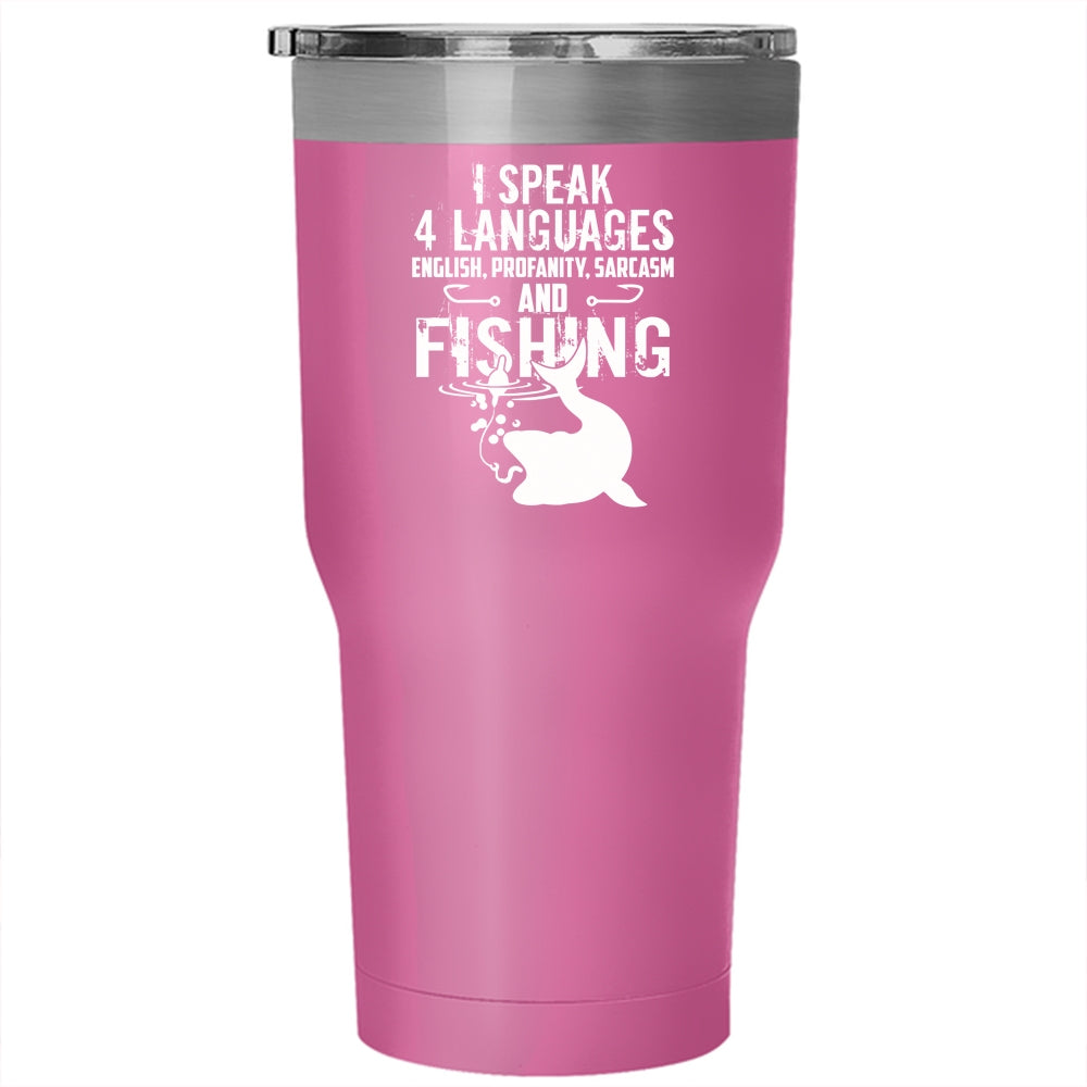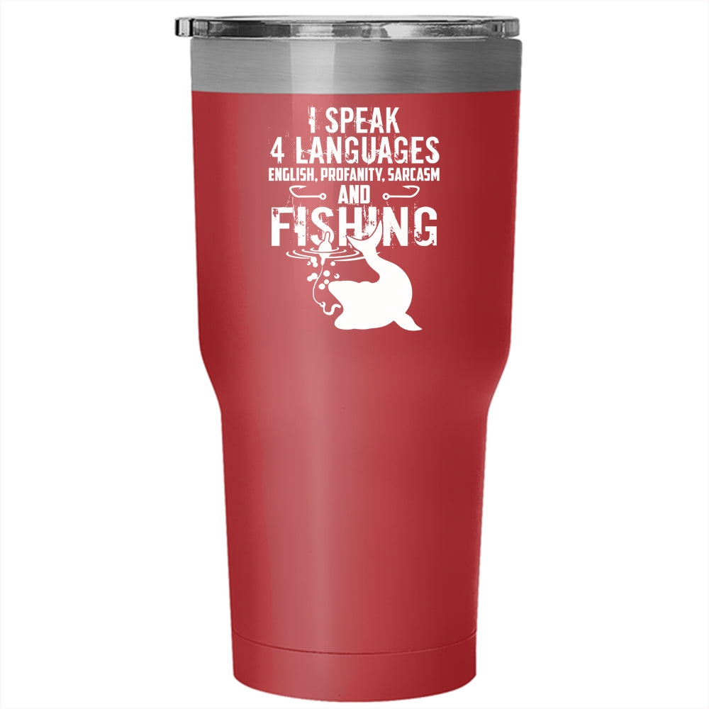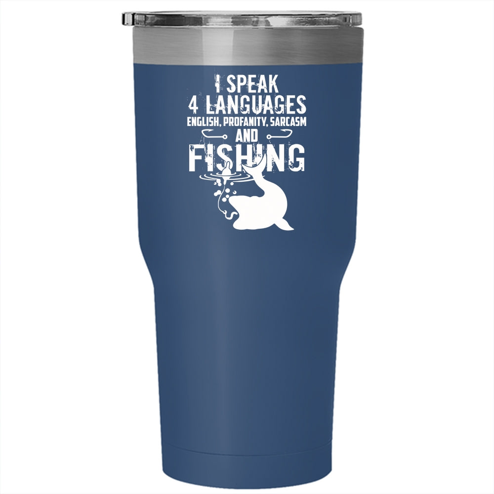 I Speak 4 Languages Tumbler 30 oz Stainless Steel, Fishing Travel Mug
