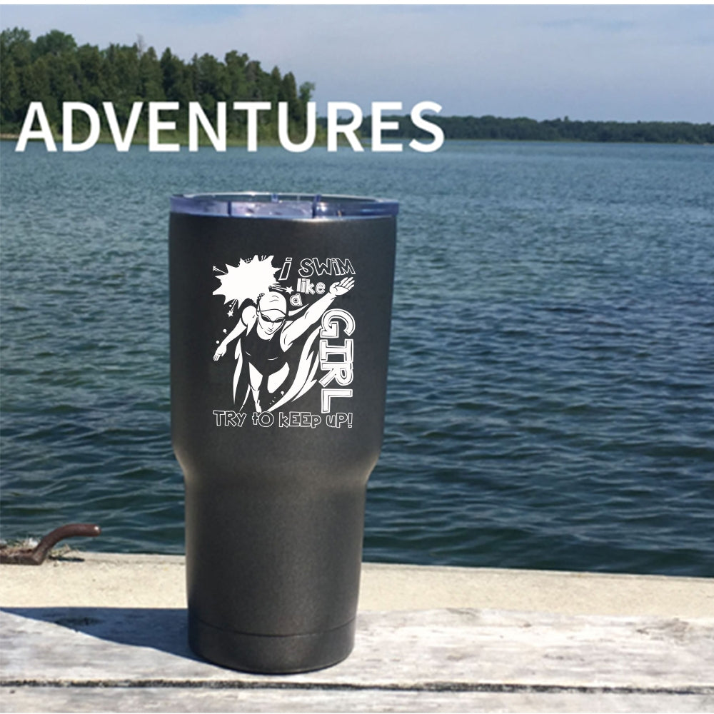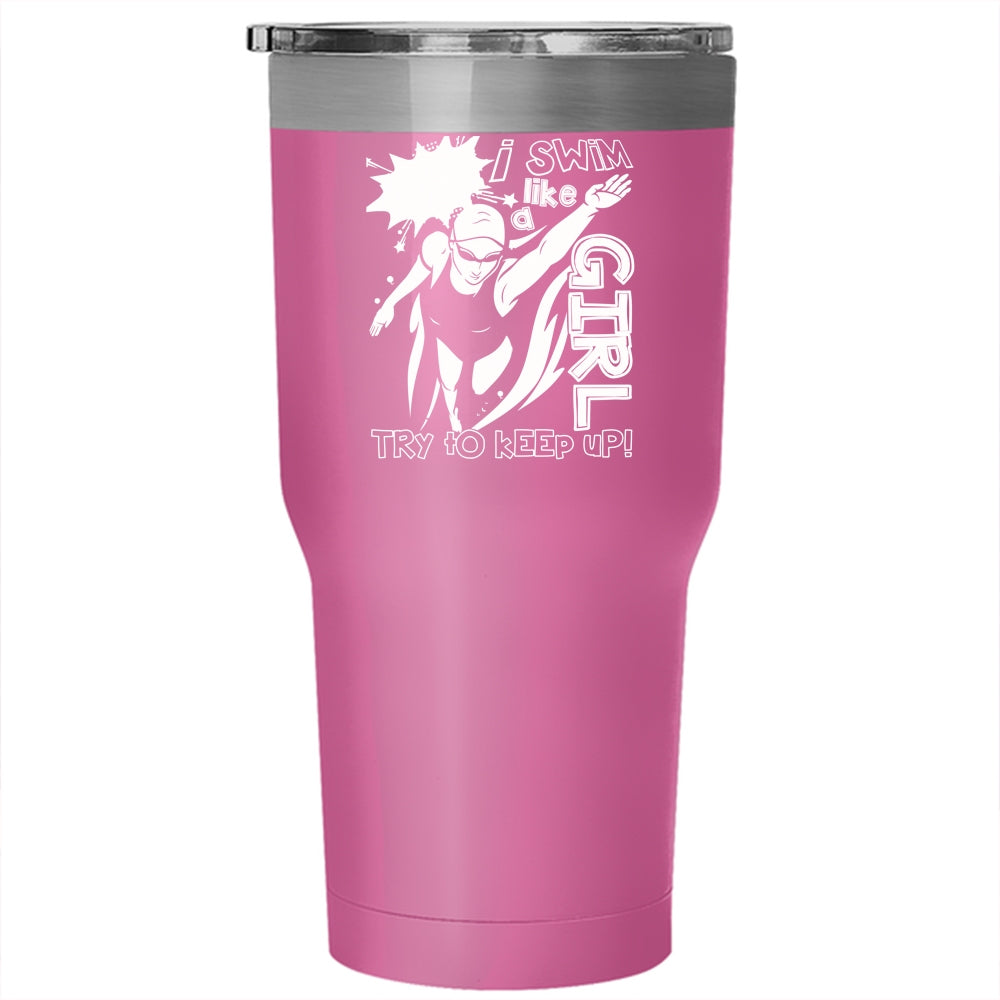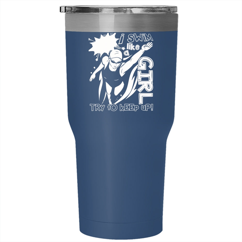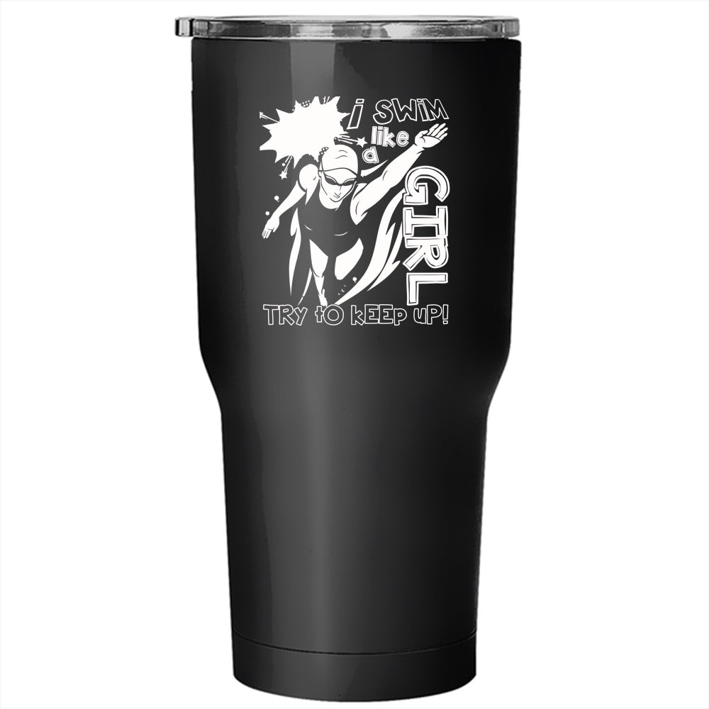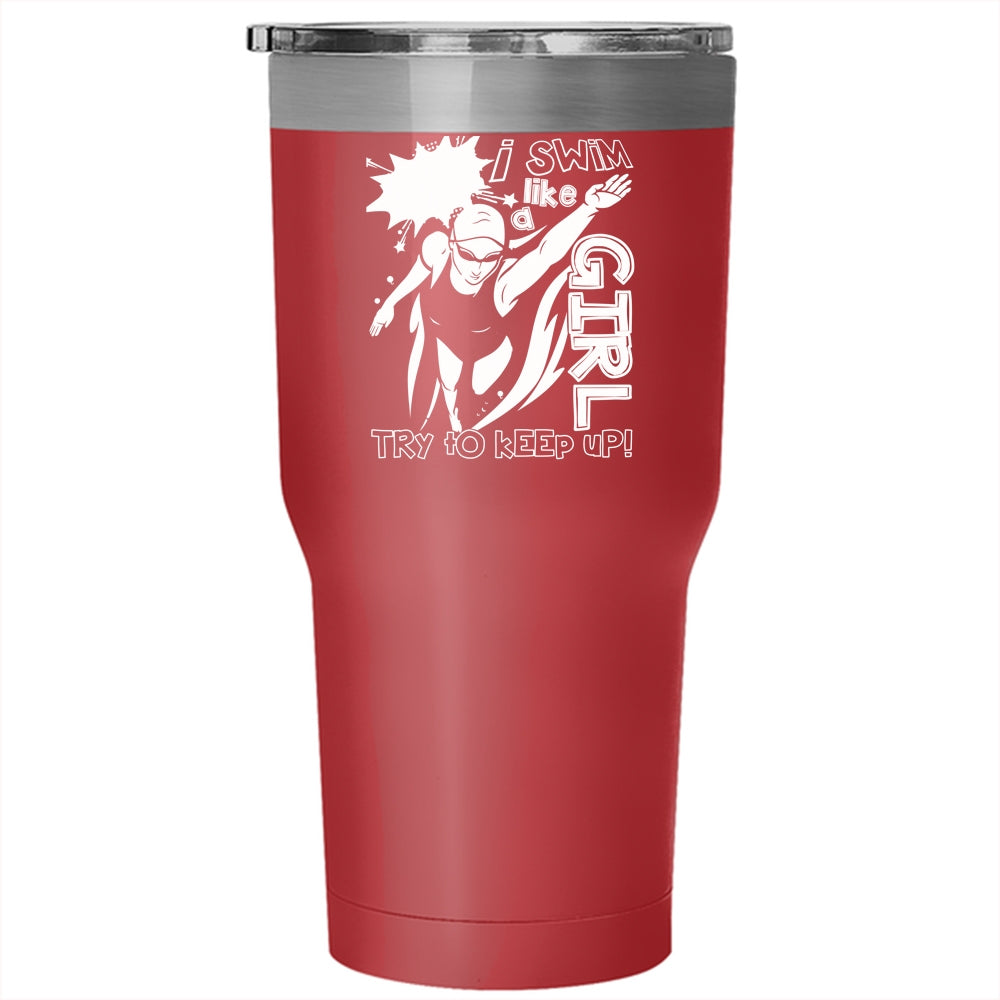 I Swim Like A Girl Tumbler 30 oz Stainless Steel, Funny Gift For Swimmer Travel Mug