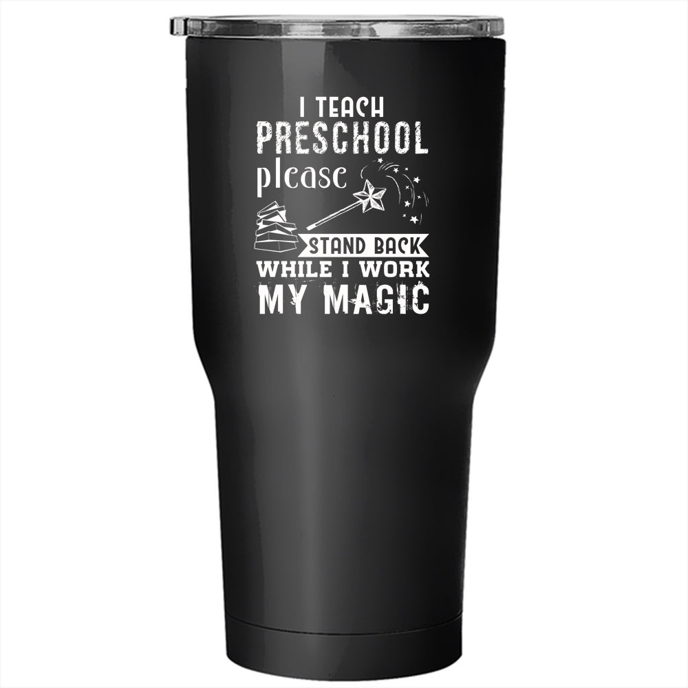 I Teach Preschool Tumbler 30 oz Stainless Steel, Stand Back While I Work My Magic Travel Mug