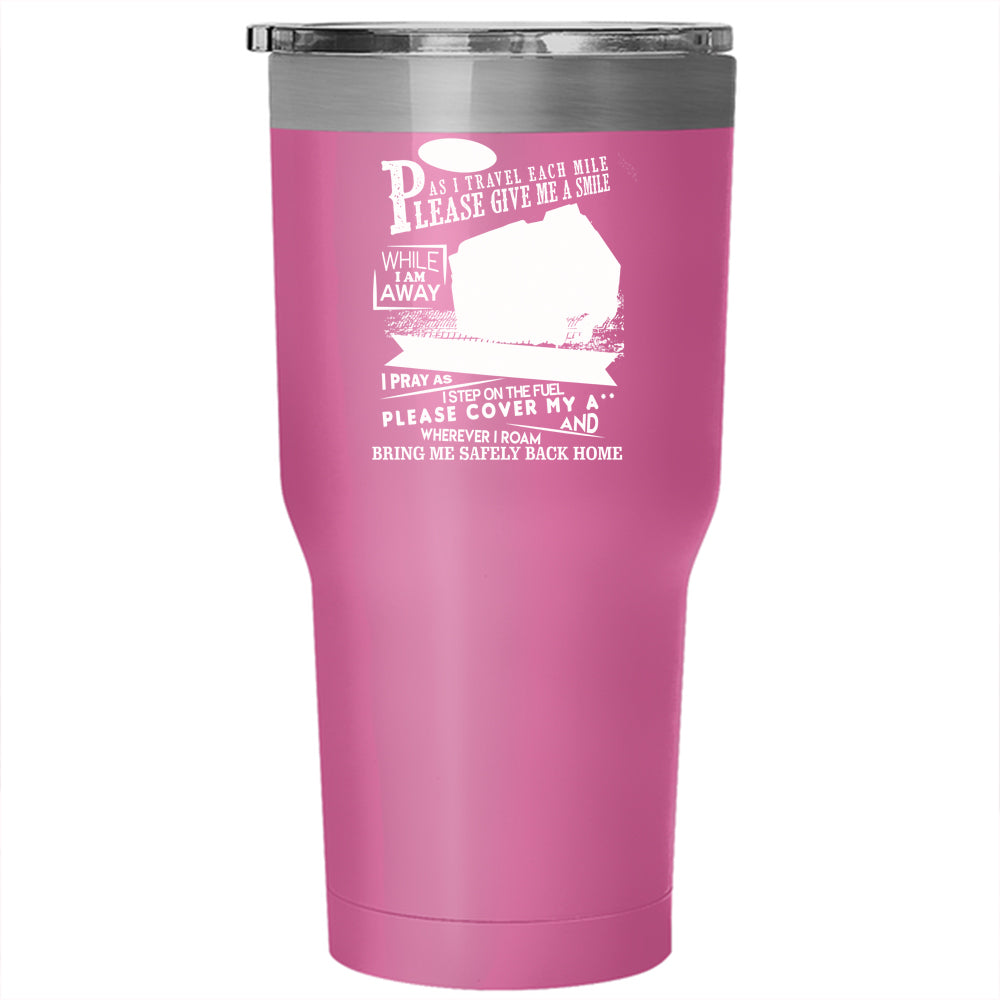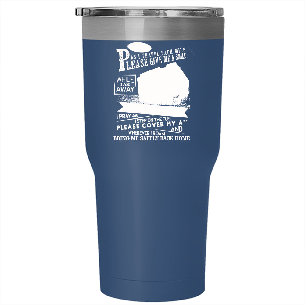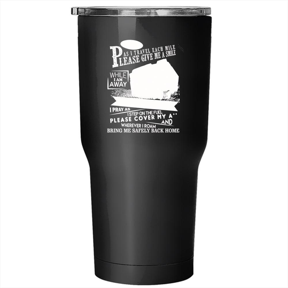 I Travel Each Mile Please Give Me A Smile Tumbler 30 oz Stainless Steel, Cute Trucker Travel Mug