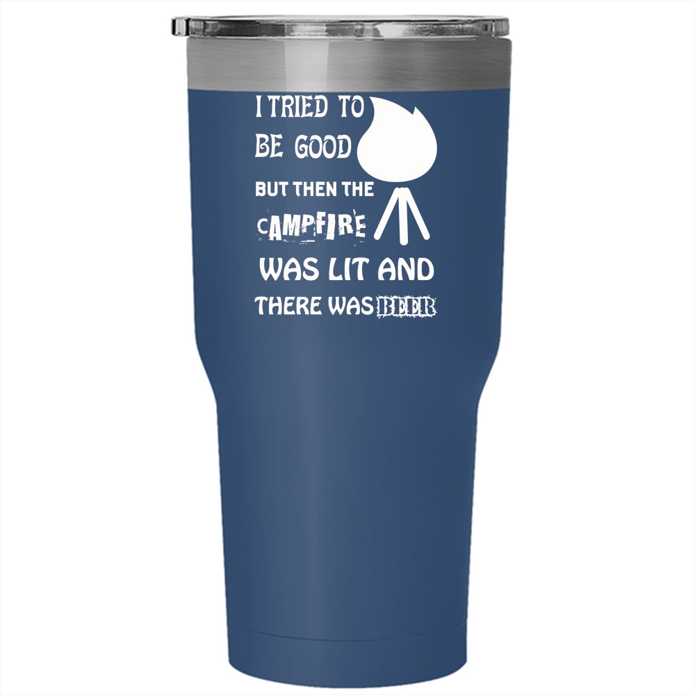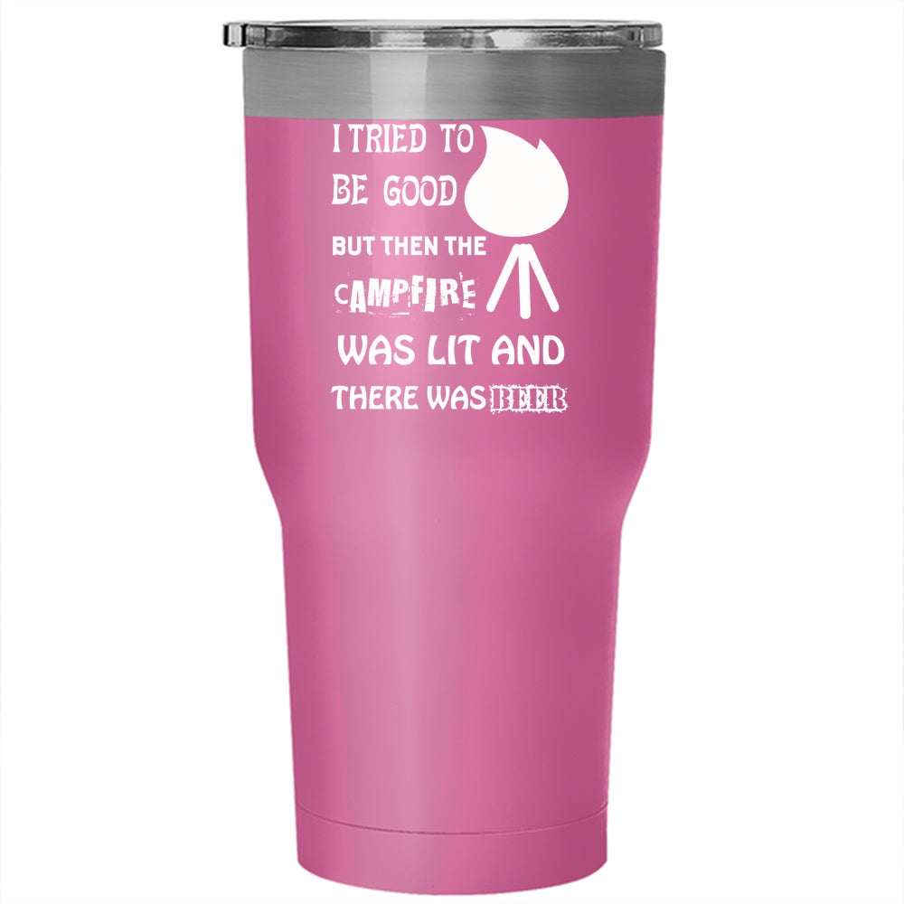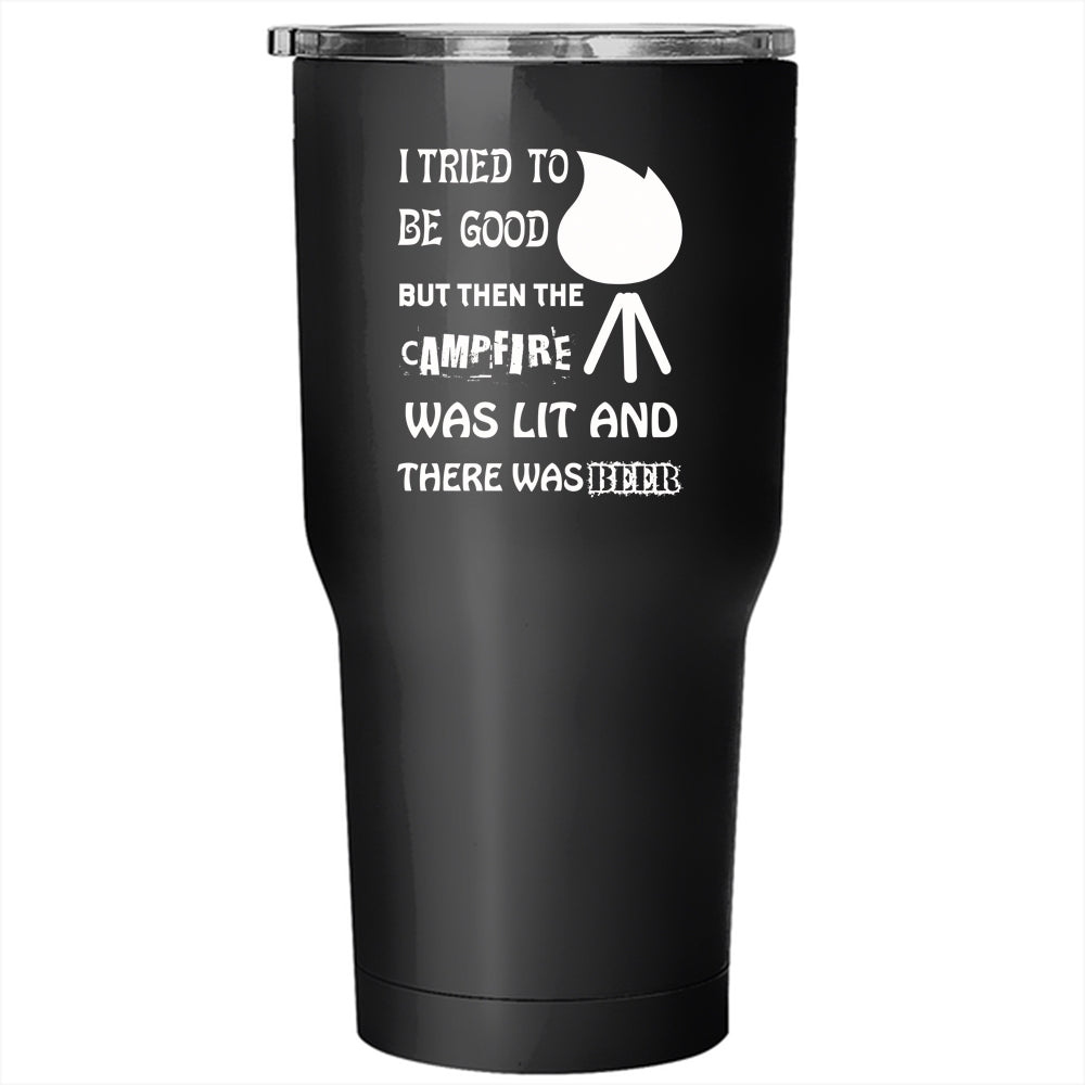 I Tried To Be Good Tumbler 30 oz Stainless Steel, The Campfire was Lit And There Beer Travel Mug