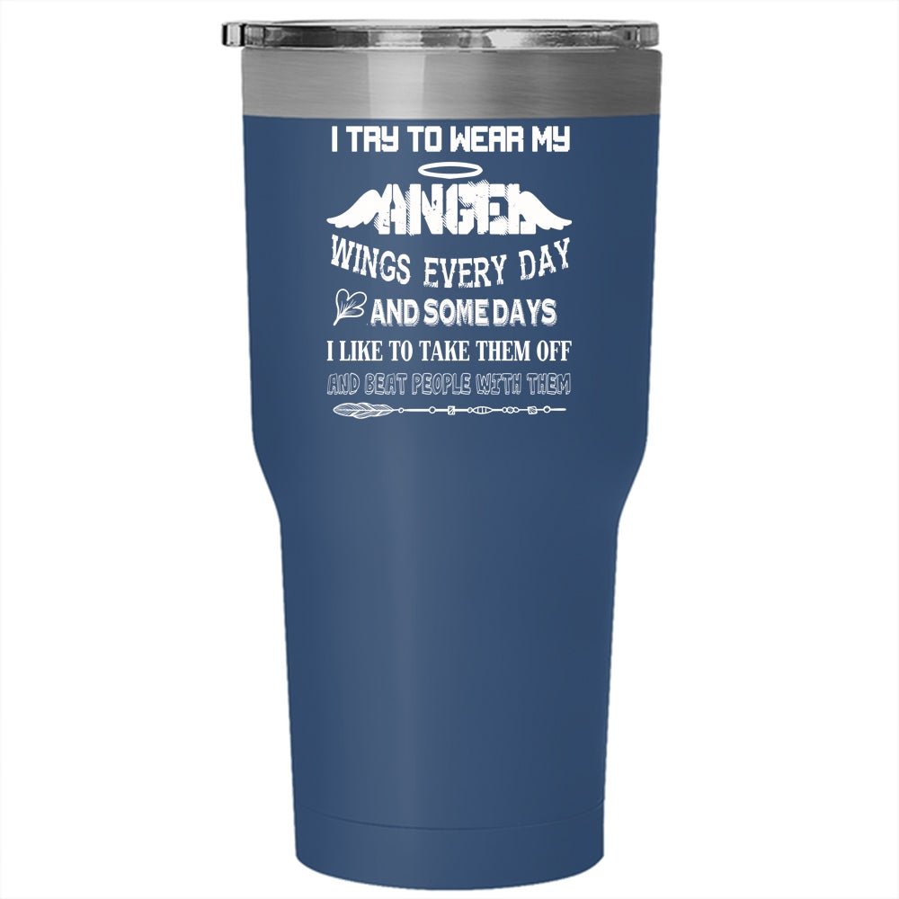 I Try To Wear My Angel Wings Everydays Tumbler 30 oz Stainless Steel, Cute Kids Travel Mug