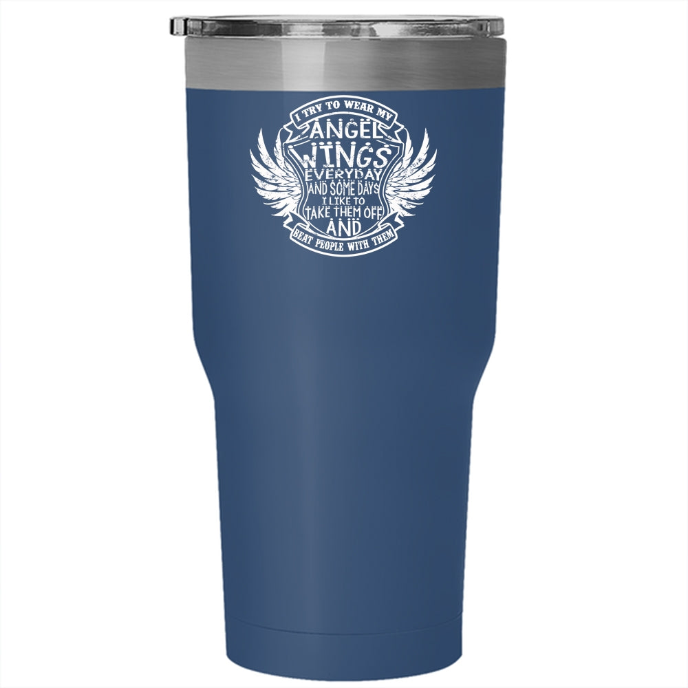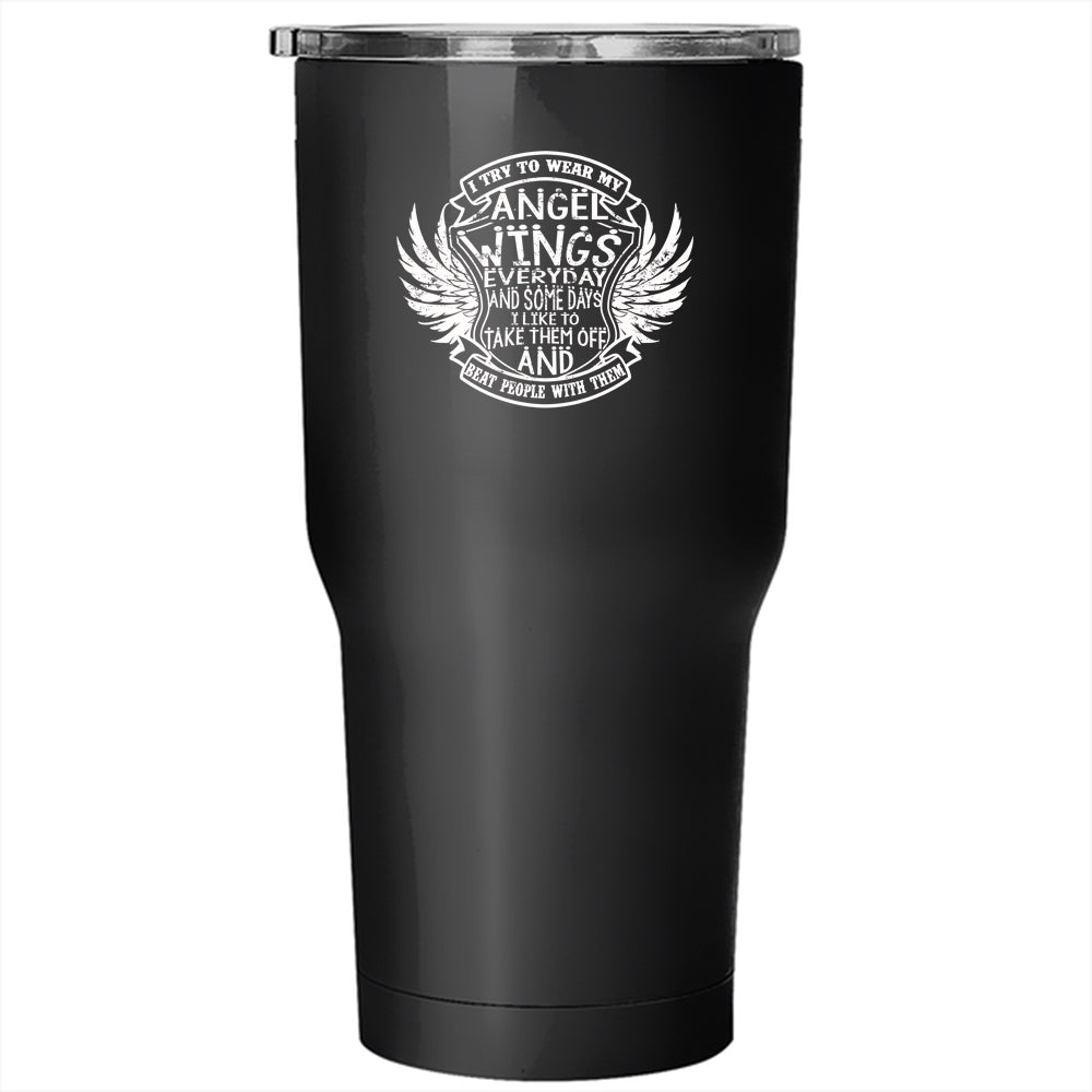 I Try To Wear My Angel Wings Everydays Tumbler 30 oz Stainless Steel, Cute Wings Travel Mug