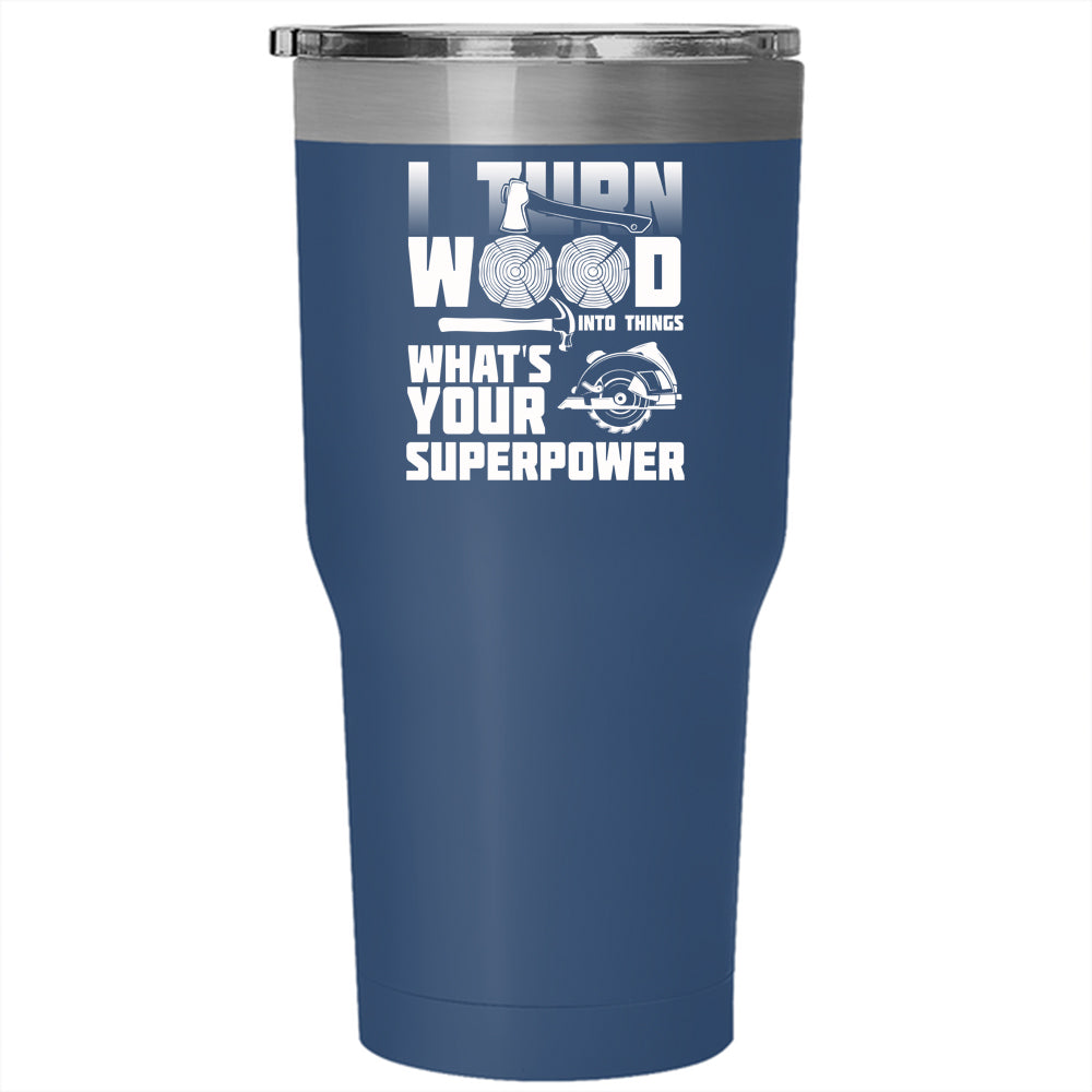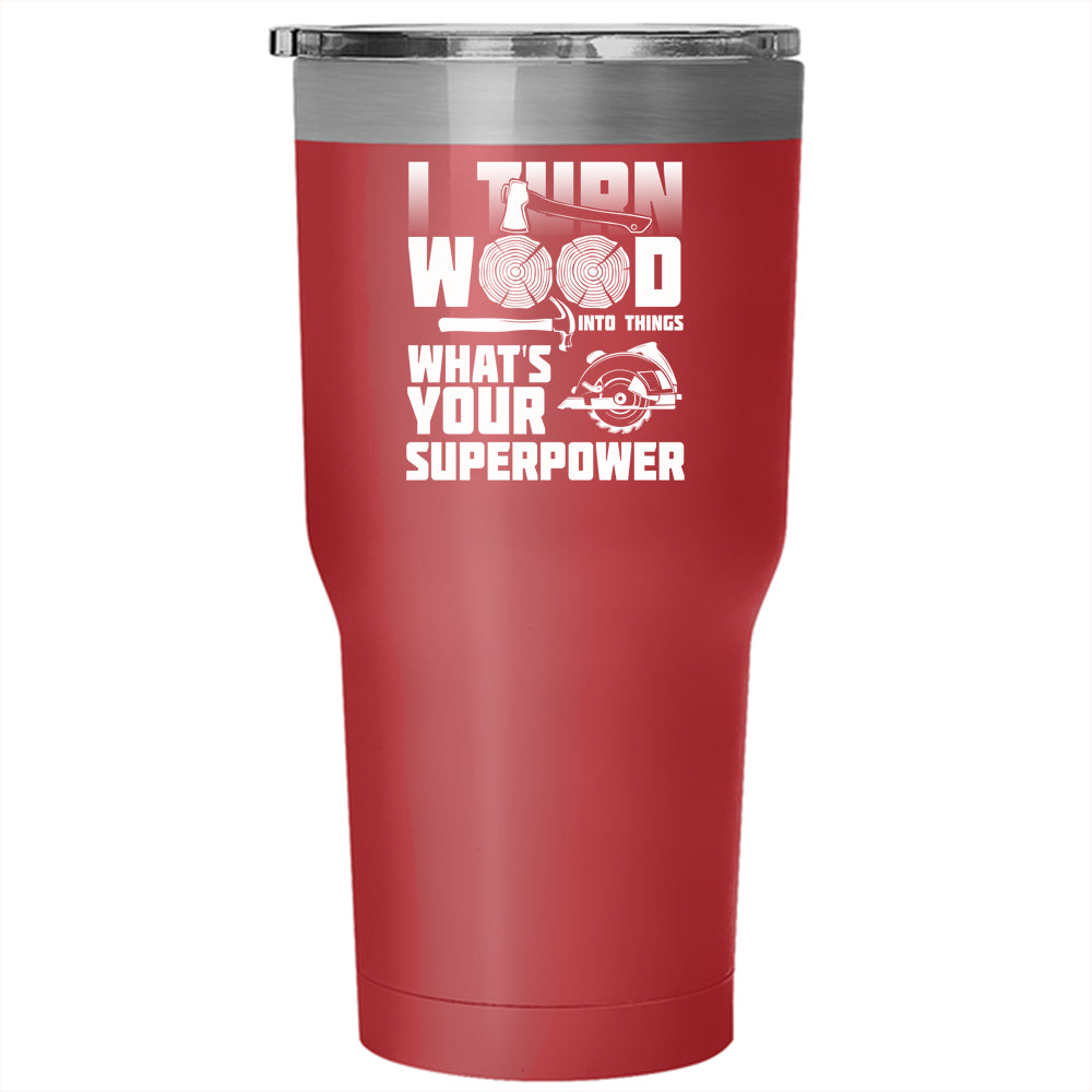 I Turn Wood Into Things Tumbler 30 oz Stainless Steel, Cool Carpenter Travel Mug