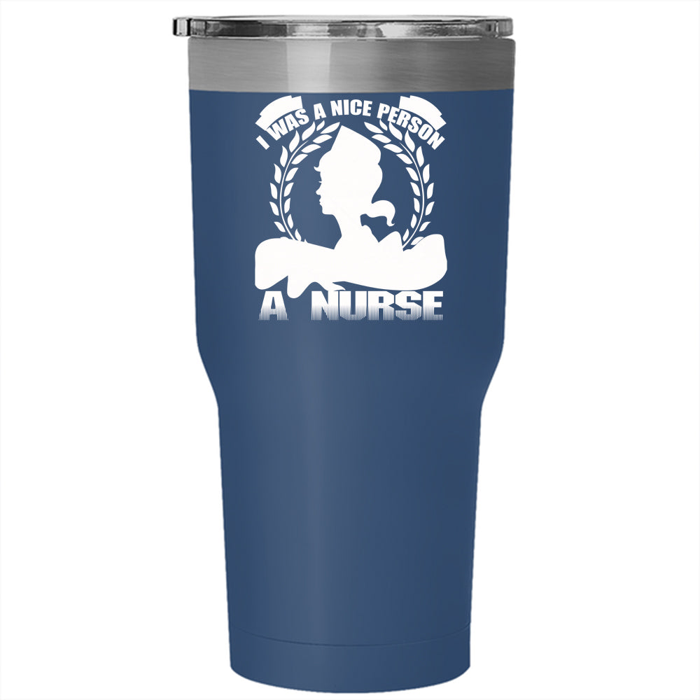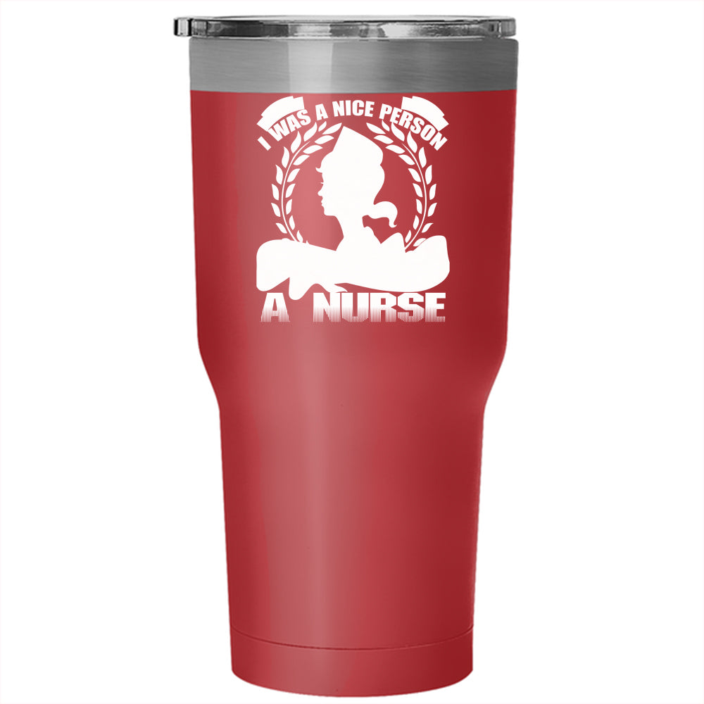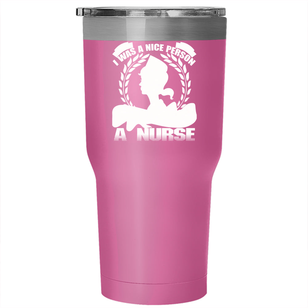 I Was A Nice Person Tumbler 30 oz Stainless Steel, I Became A Nurse Travel Mug