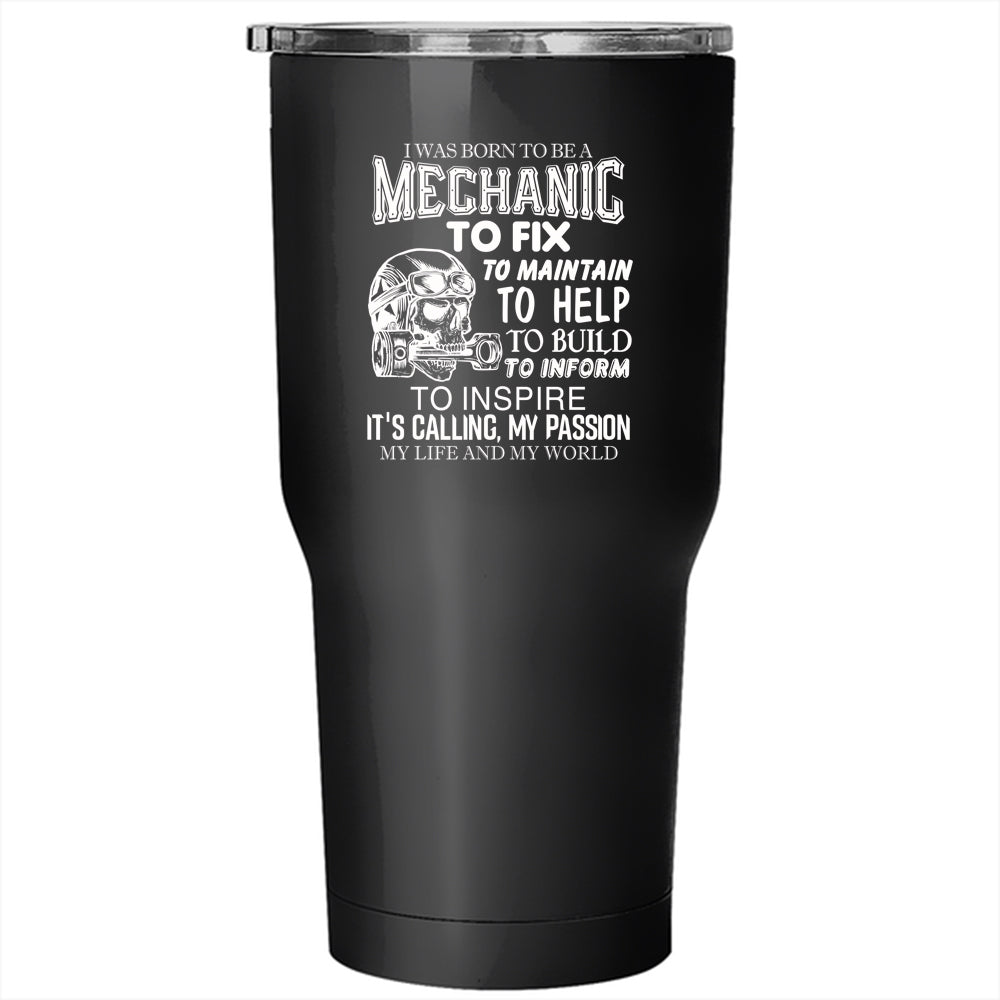 I Was Born To Be A Mechanic Tumbler 30 oz Stainless Steel, Cool Mechanics Travel Mug