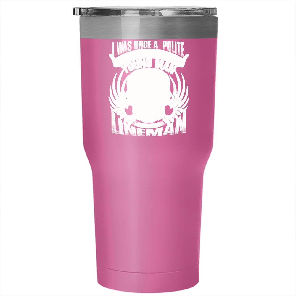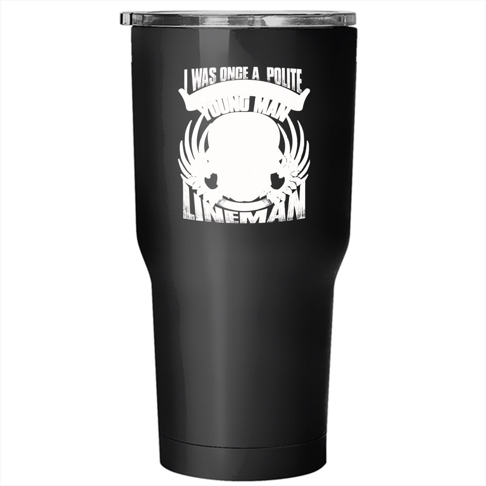 I Was Once A Polite And Young Man Tumbler 30 oz Stainless Steel, I Became A Lineman Travel Mug