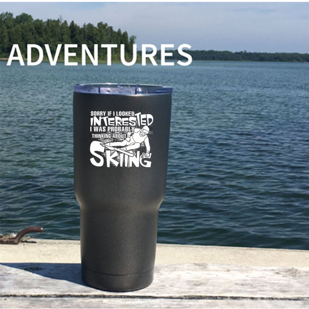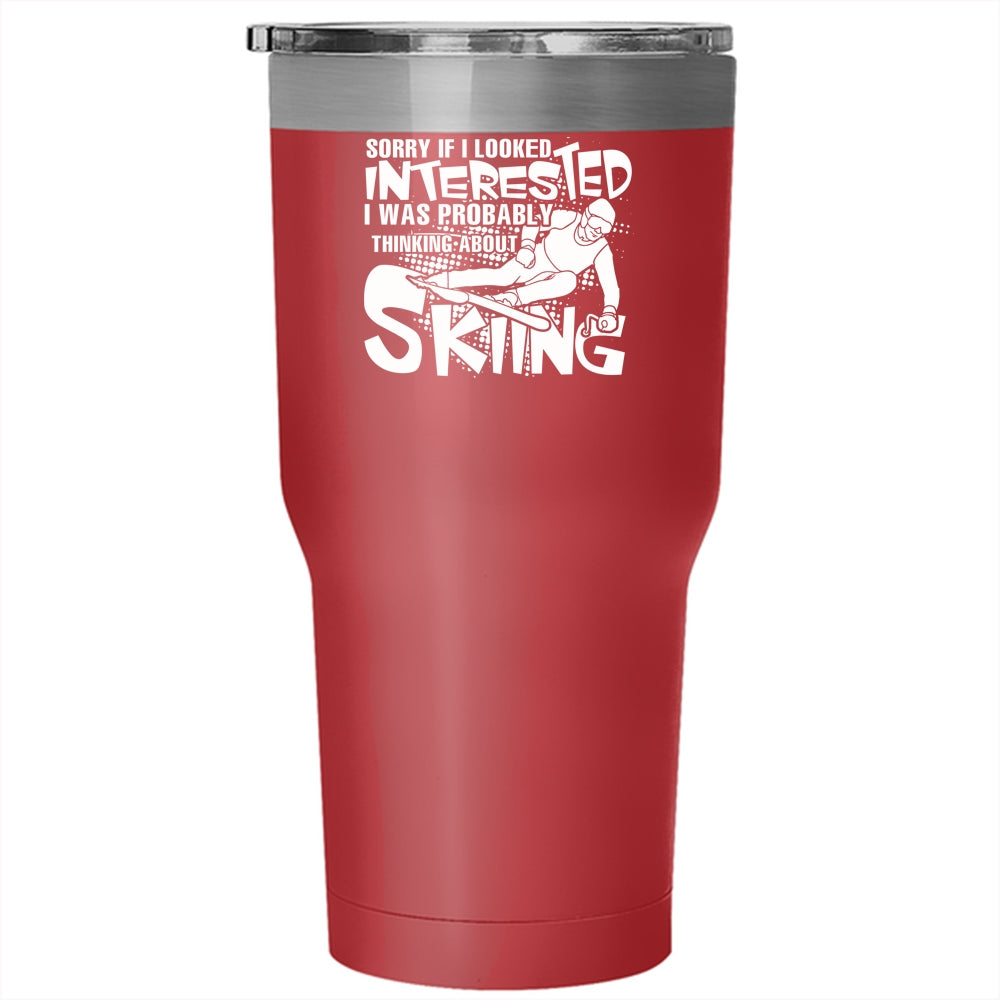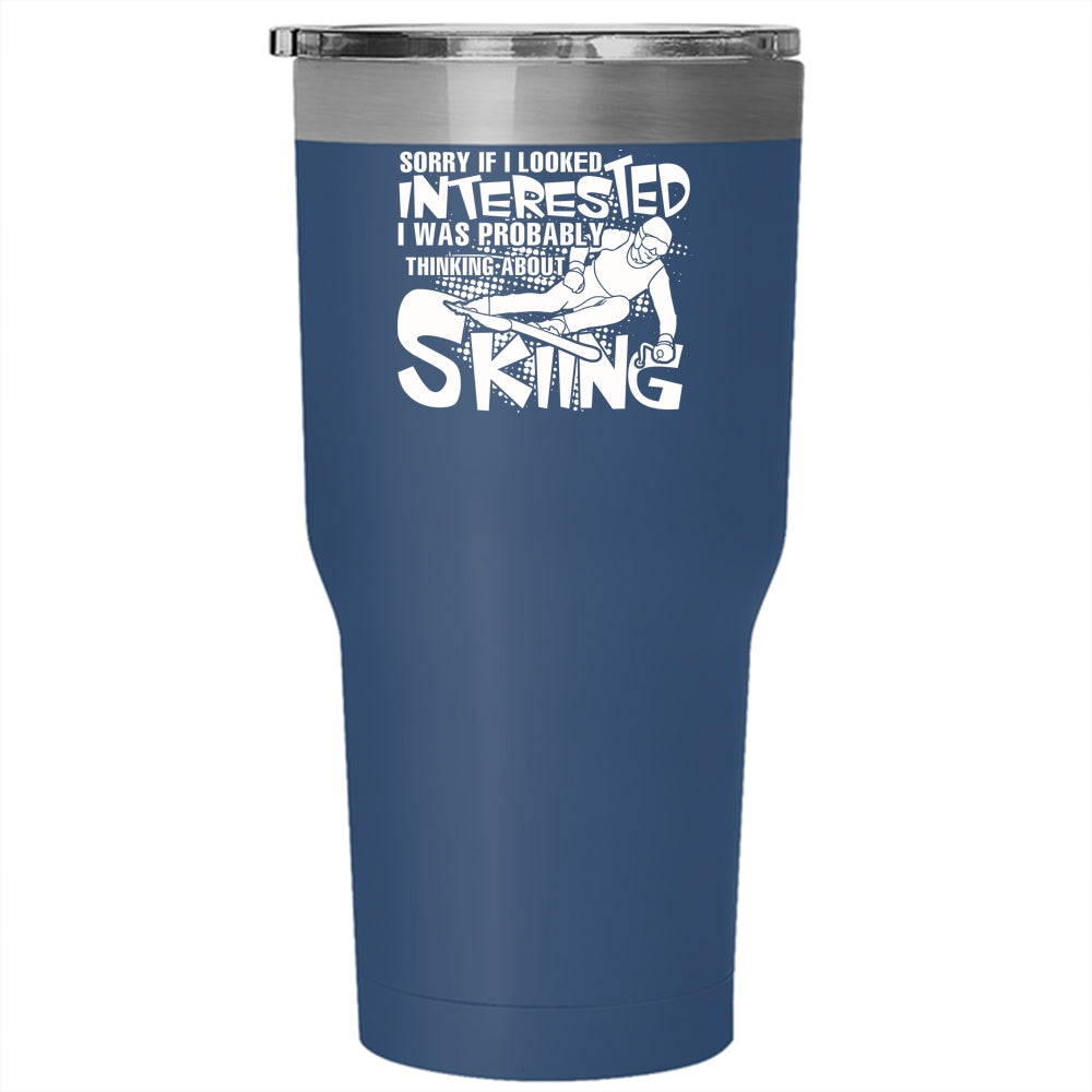 I Was Probably Thinking A Bout Skiing Tumbler 30 oz Stainless Steel, Love Skiing Travel Mug