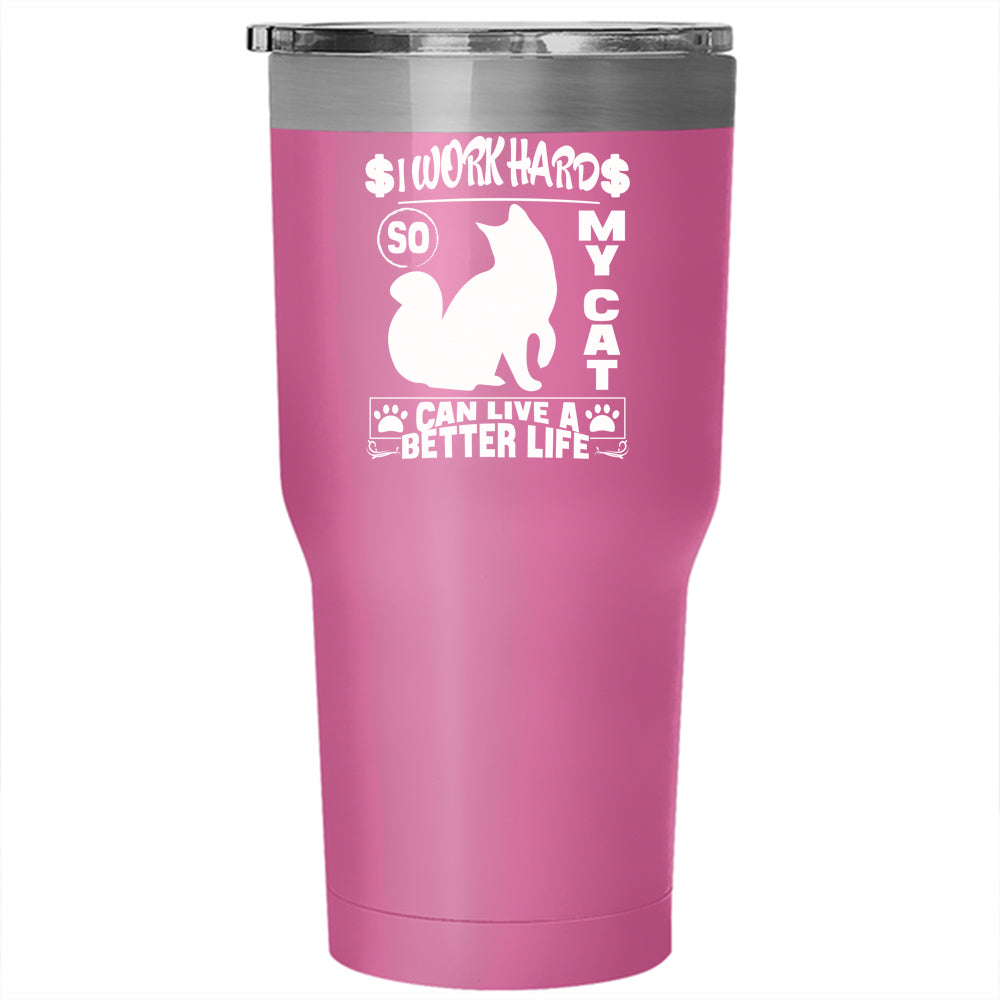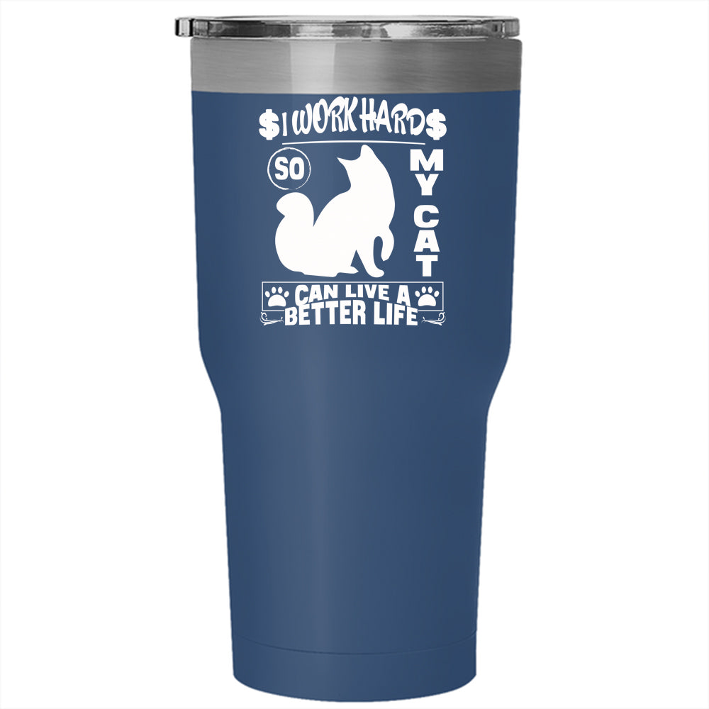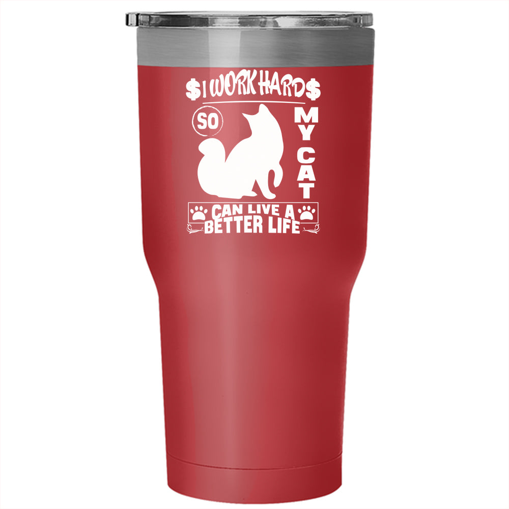 I Work Hard So My Cat Can Live A Better Life Tumbler 30 oz Stainless Steel, Cute Travel Mug