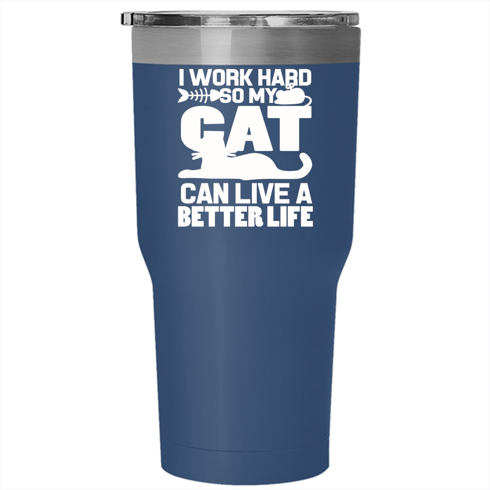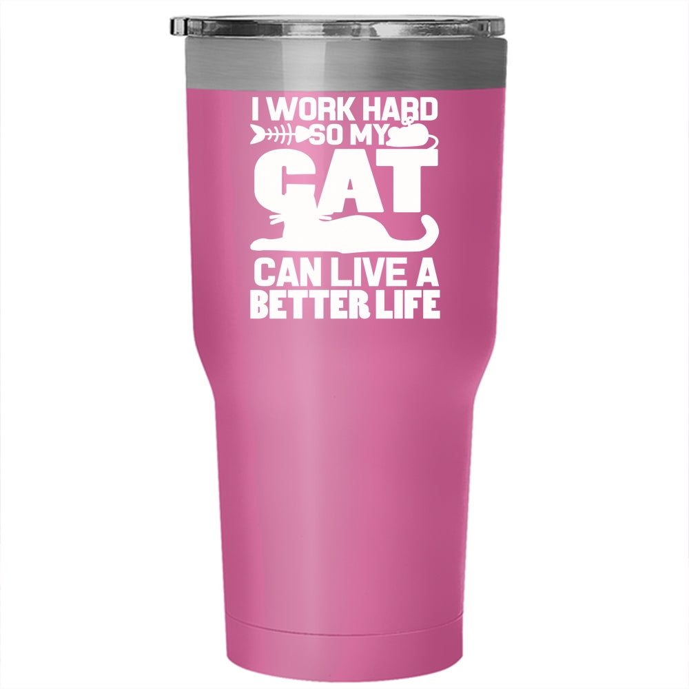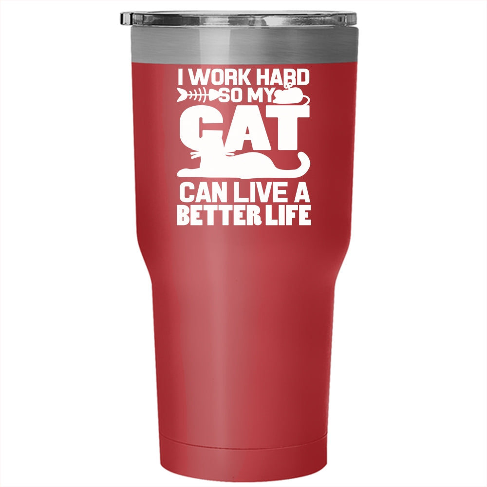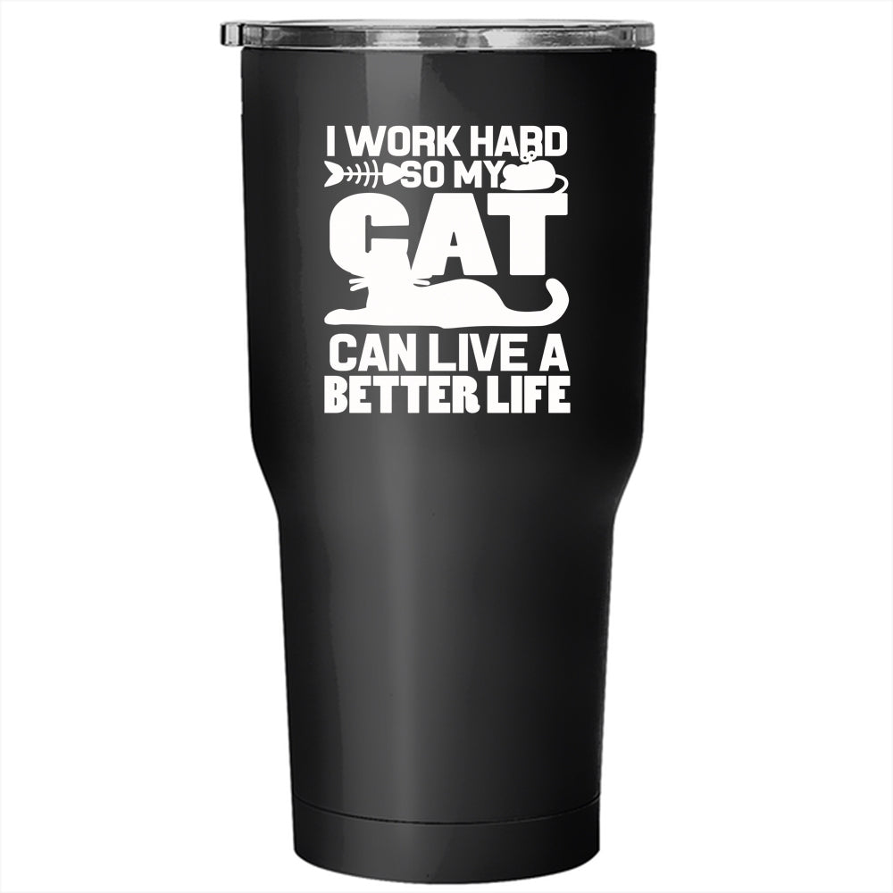 I Work Hard Tumbler 30 oz Stainless Steel, My Cat Can Live A Better Life Travel Mug