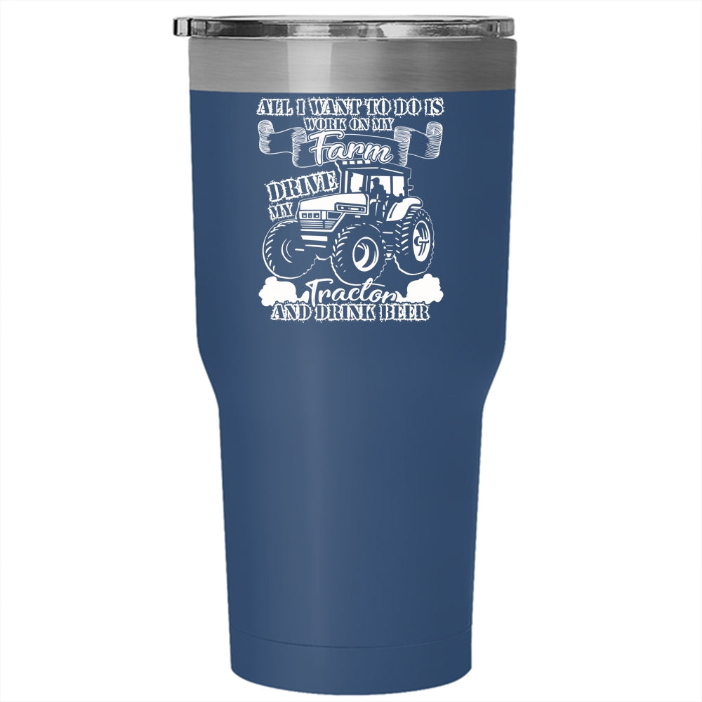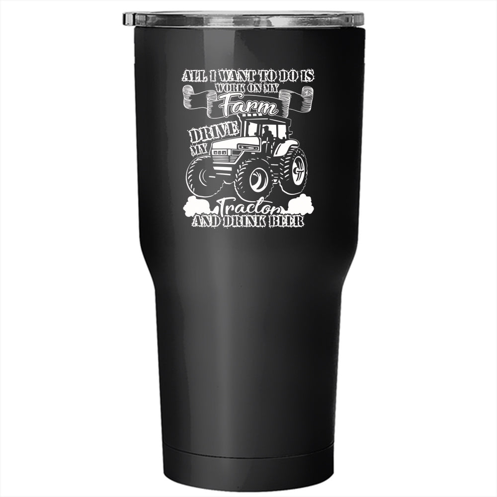 I Work On My Farm Tumbler 30 oz Stainless Steel, Drive My Tractor And Drink Beer Travel Mug
