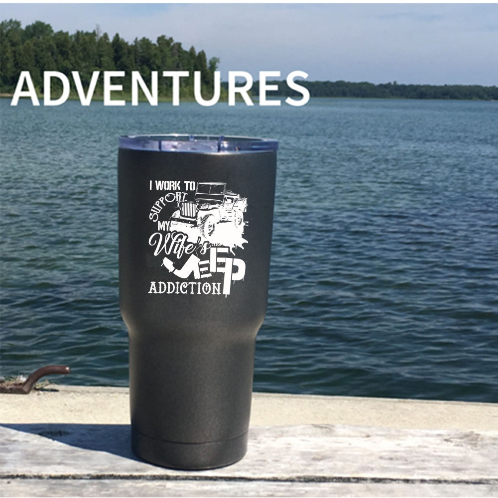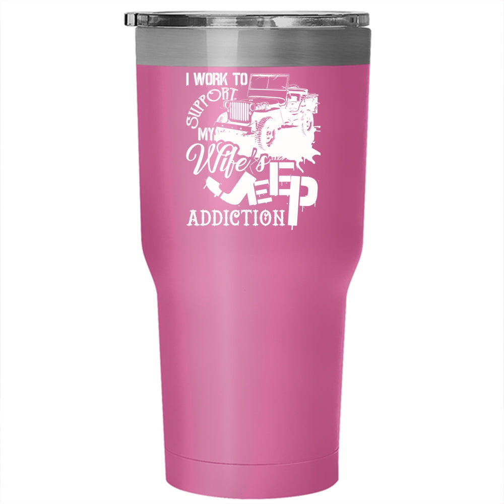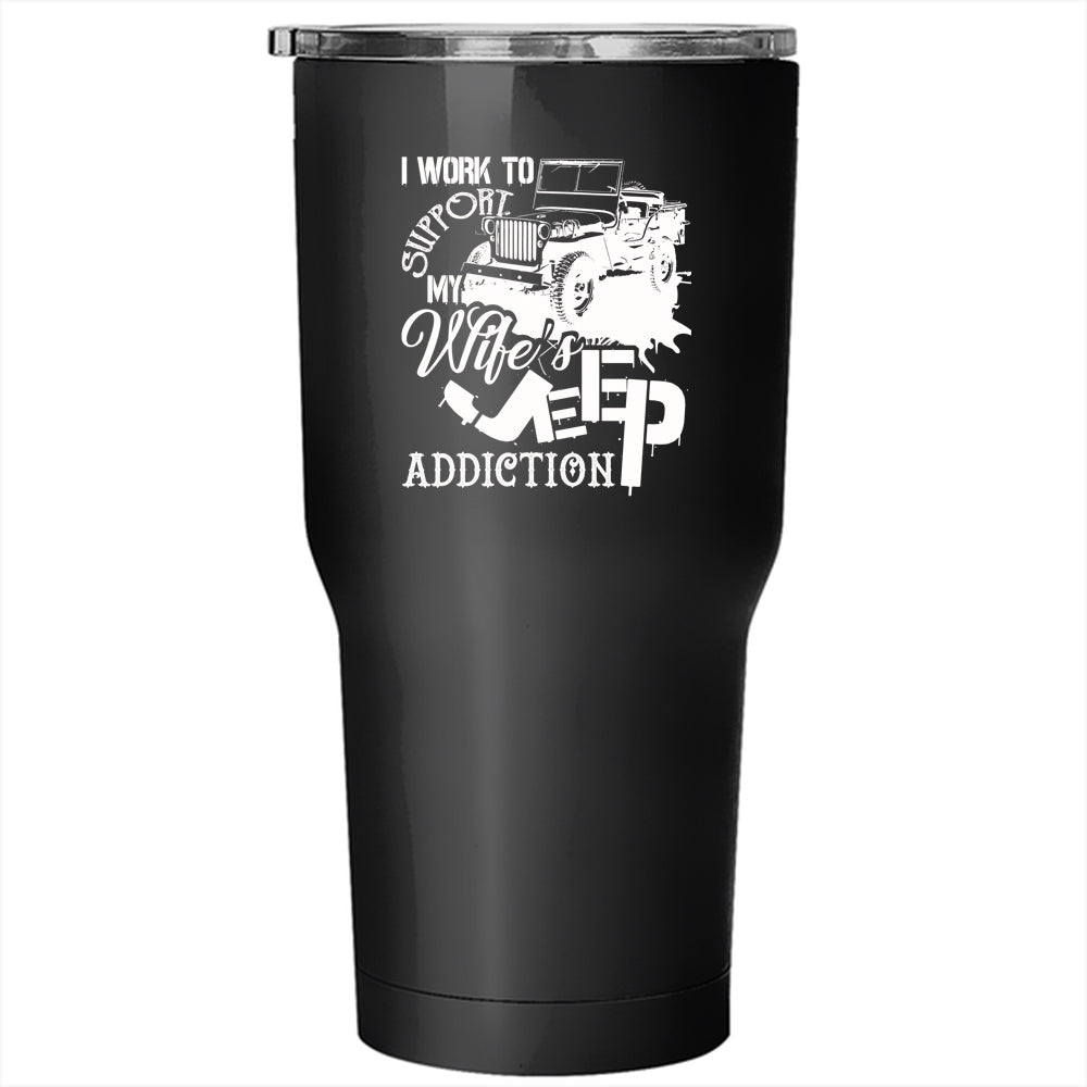 I Work To Support Tumbler 30 oz Stainless Steel, My Wife's Jeep Addiction Travel Mug