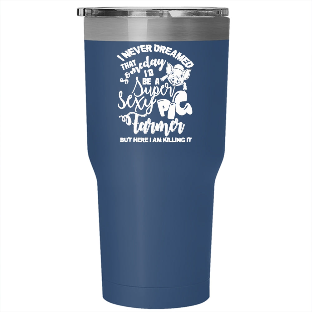 I'd Be A Pig Farmer Tumbler 30 oz Stainless Steel, I Love Pigs Travel Mug
