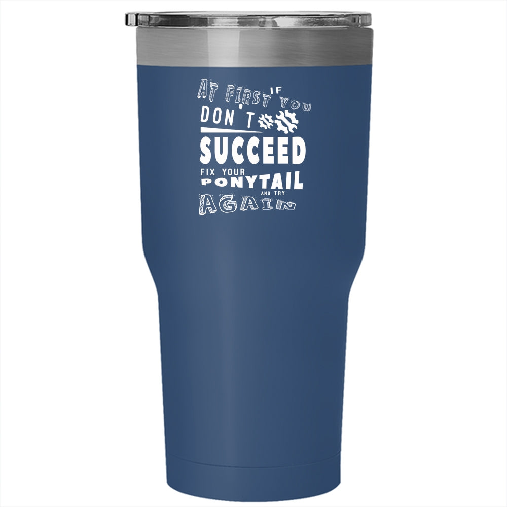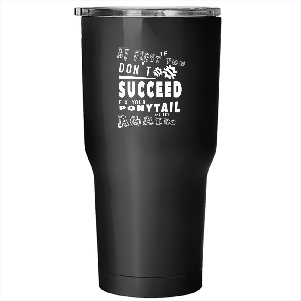 If At First You Don't Succeed Tumbler 30 oz Stainless Steel, Fix Your Ponytail And Try Again Travel Mug