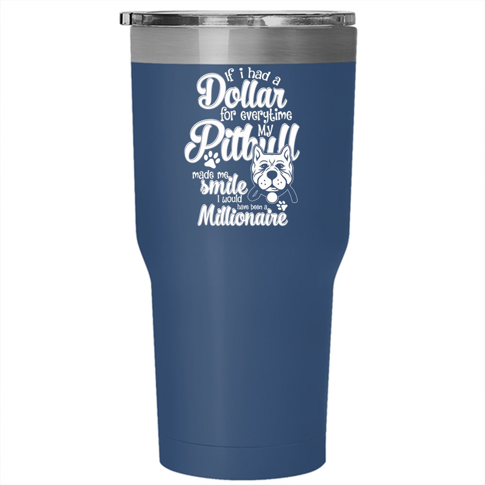 If I Had A Dollar For Everything Tumbler 30 oz Stainless Steel, My Pitbull Made Me Smile Travel Mug