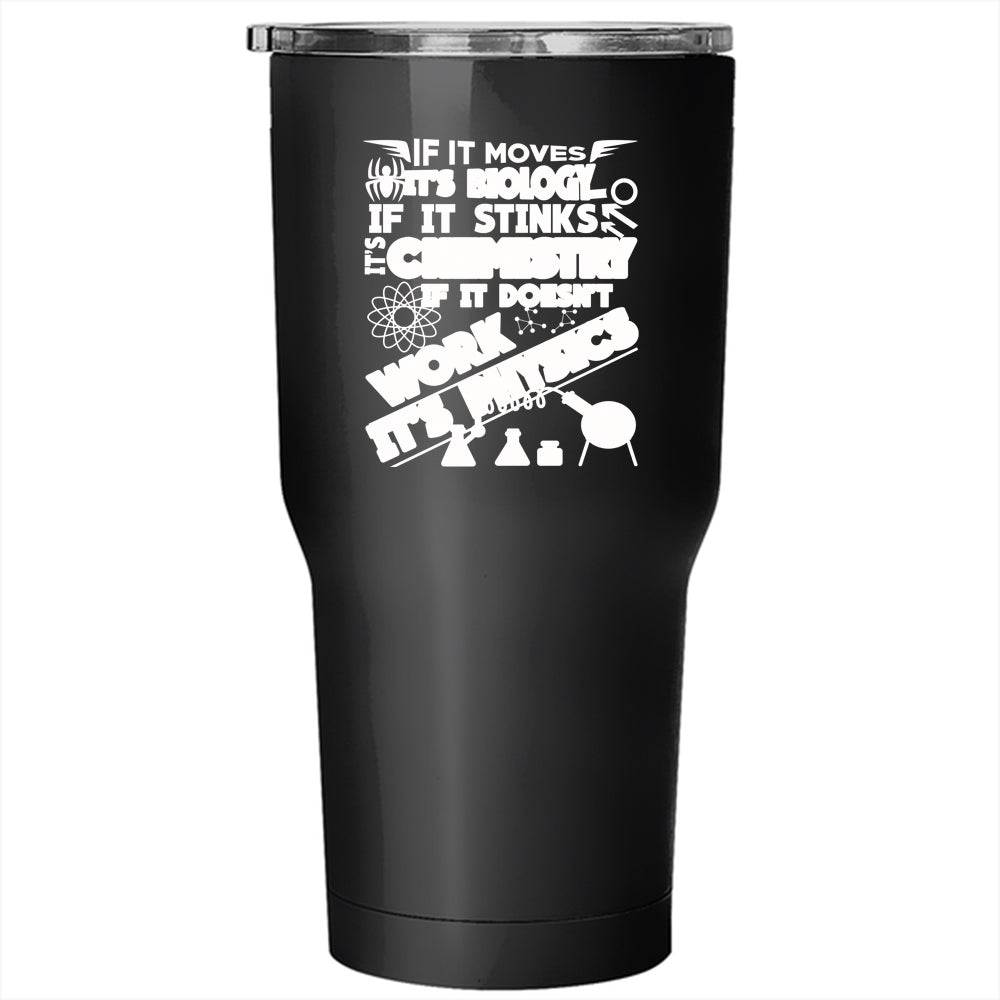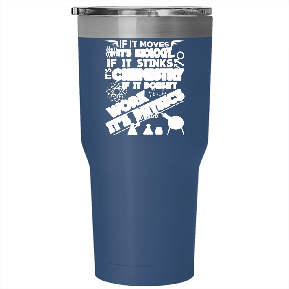 If It Moves It's Biology Tumbler 30 oz Stainless Steel, Chemistry And Physics Travel Mug