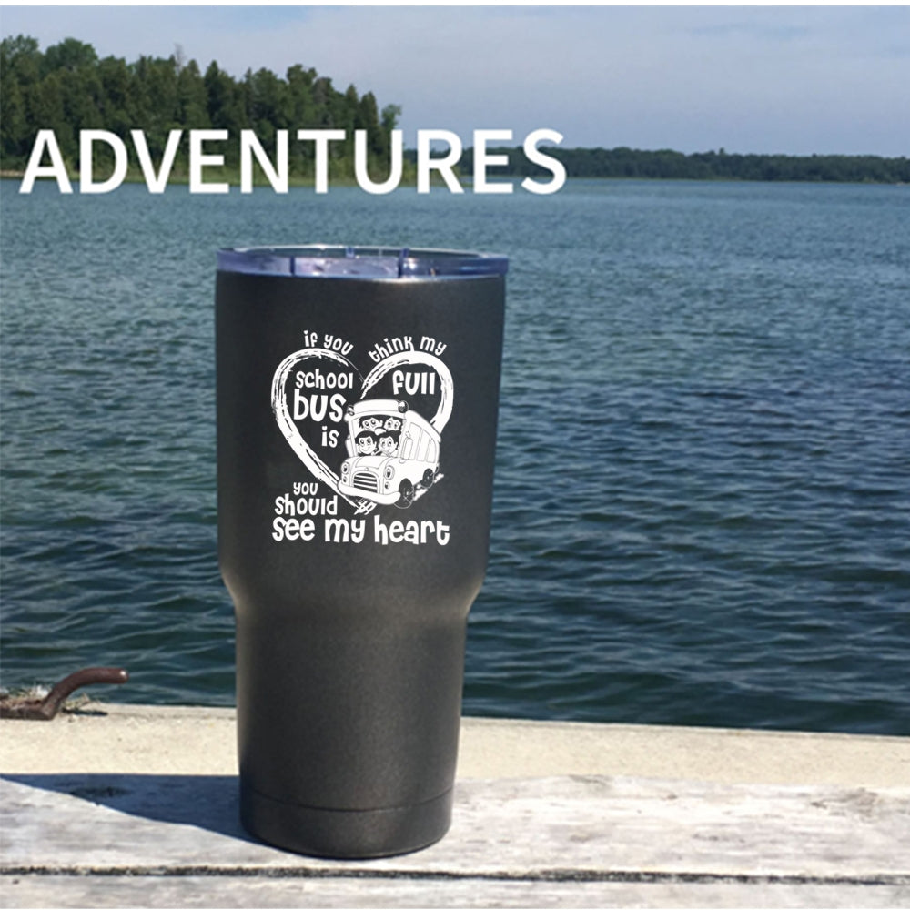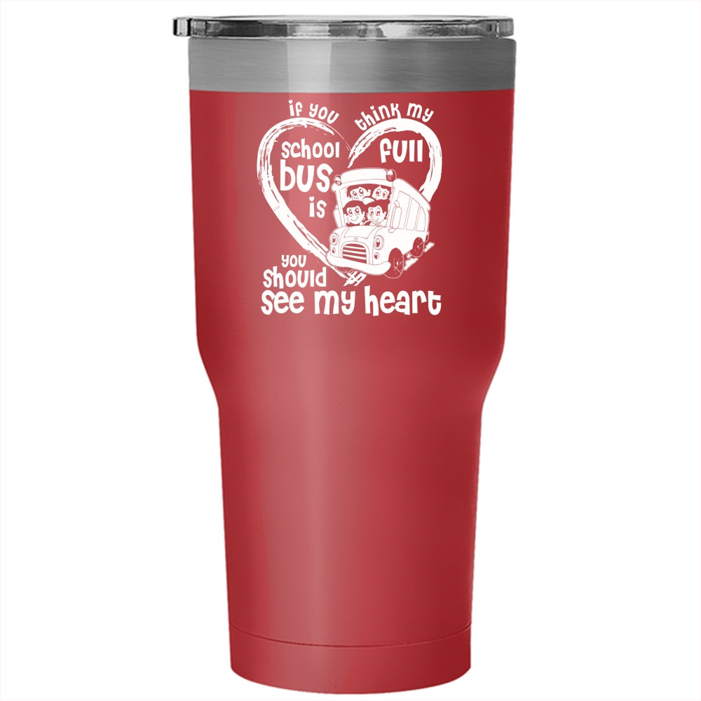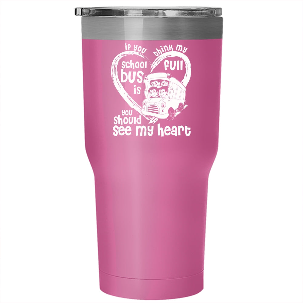 If You Think My School Bus Is Full Tumbler 30 oz Stainless Steel, You Should See My Heart Travel Mug