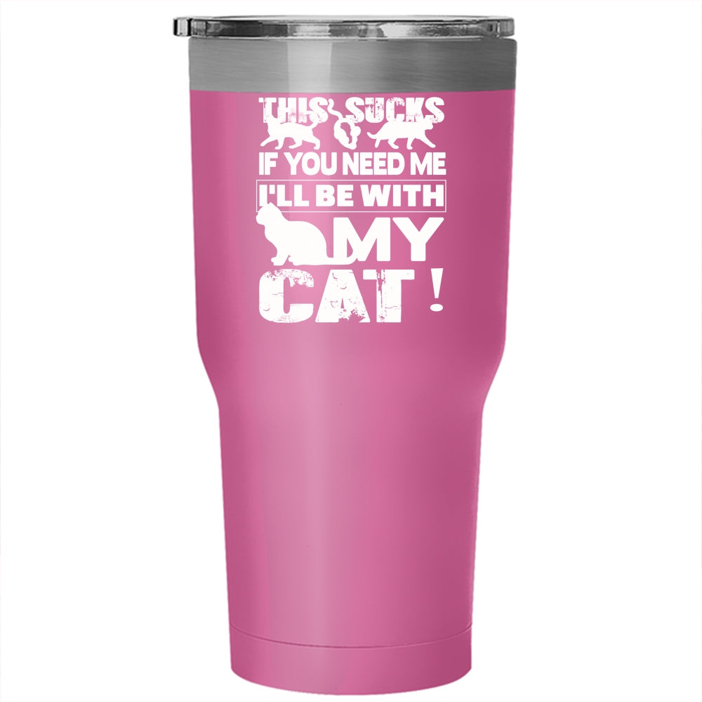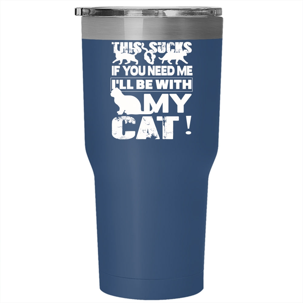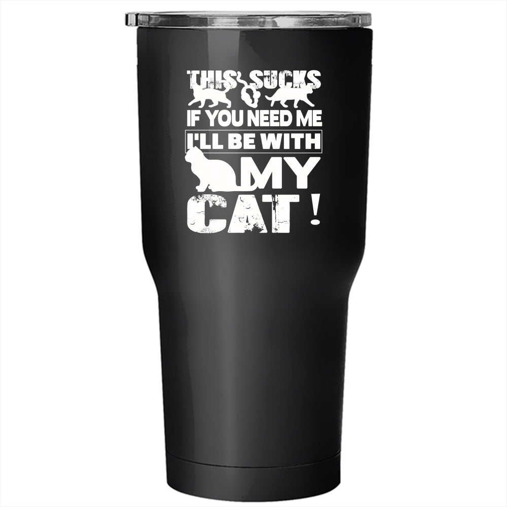 I'll Be With My Cat Tumbler 30 oz Stainless Steel, Cute Cat Lovers Travel Mug