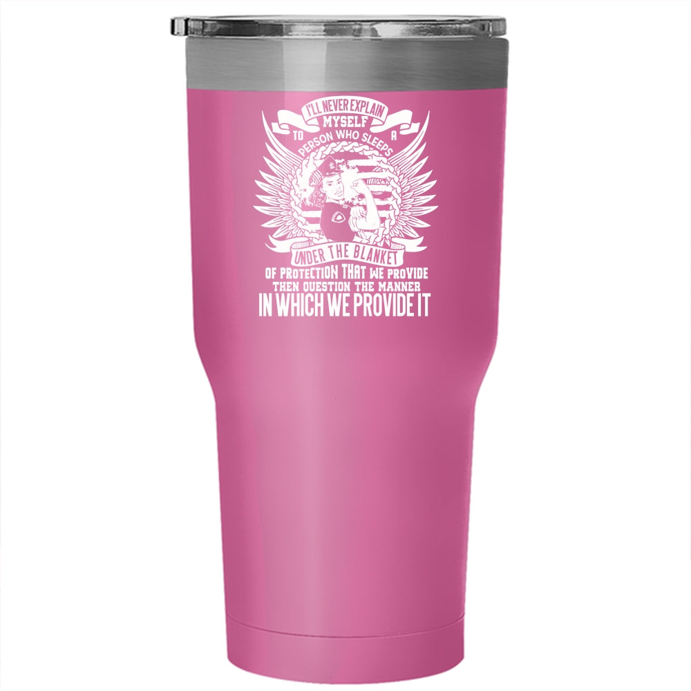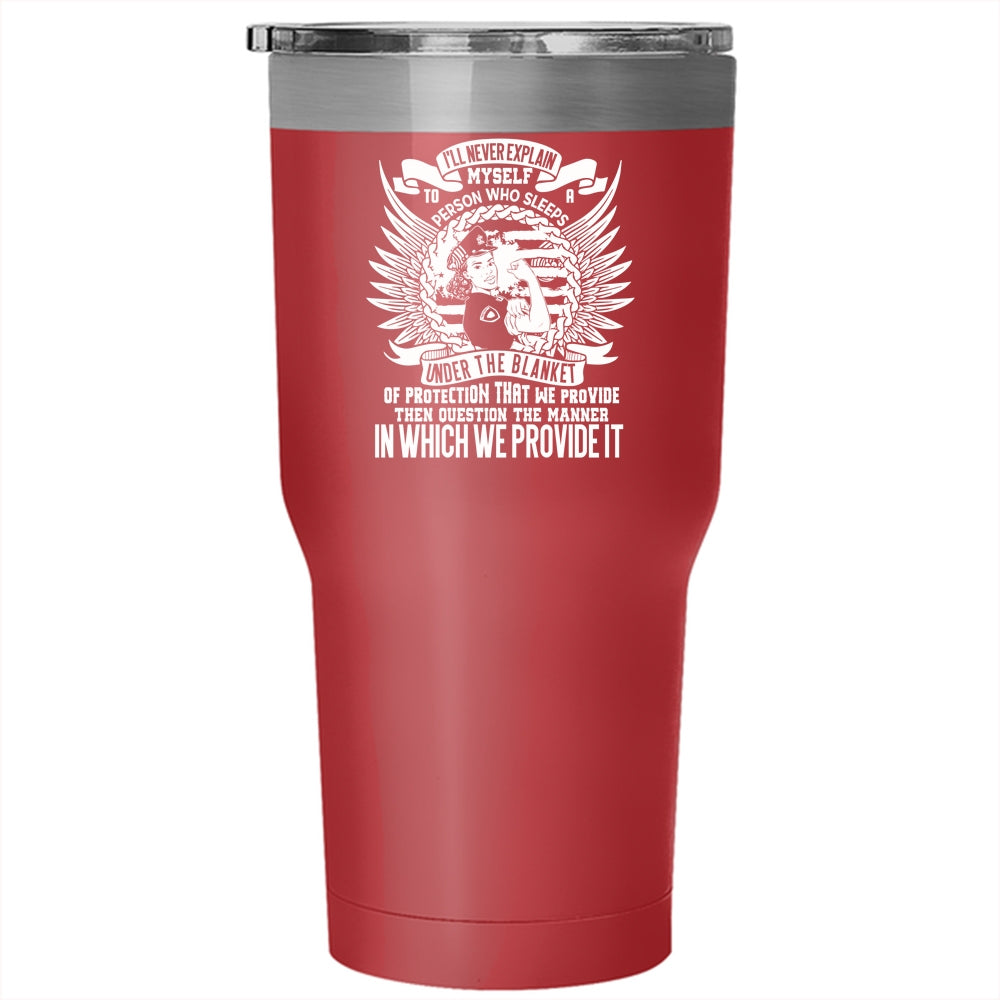 I'll Never Explain Myself To A Person Tumbler 30 oz Stainless Steel, Funny Policeman Travel Mug