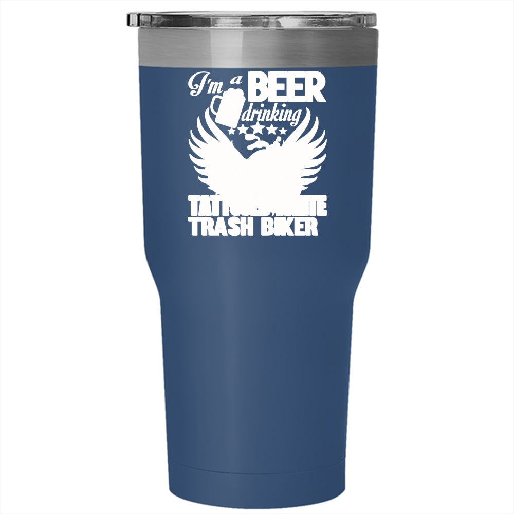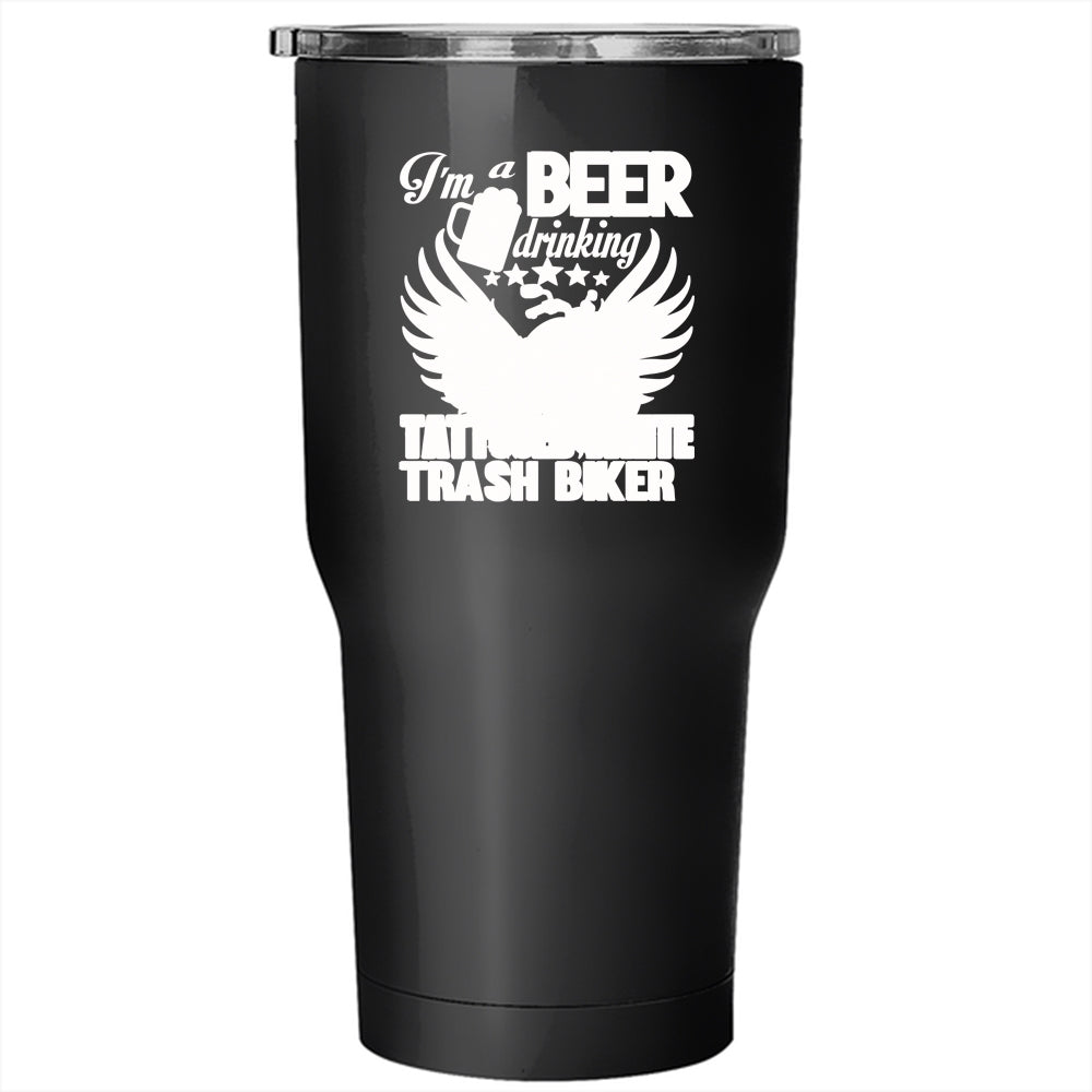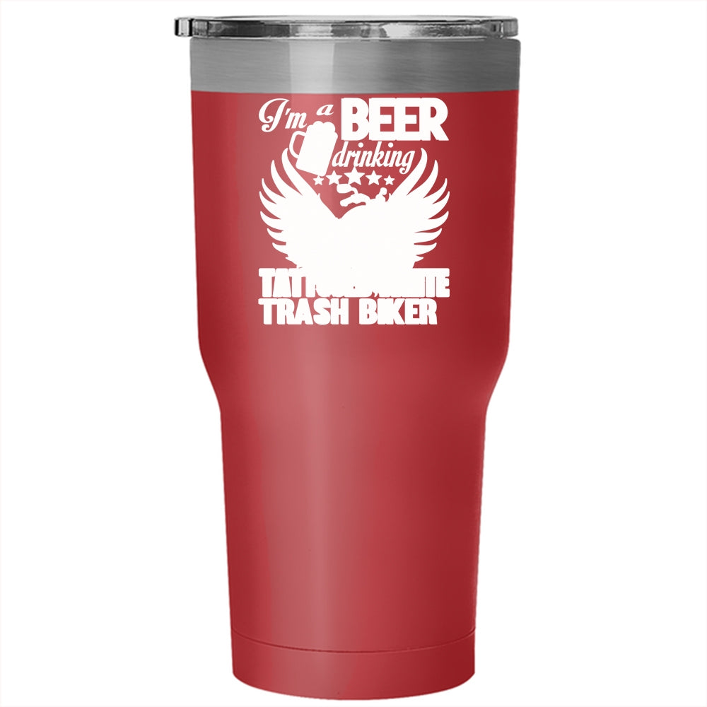 I'm A Beer Drinking Tattooed White Trash Biker Tumbler 30 oz Stainless Steel, Funny Travel Mug