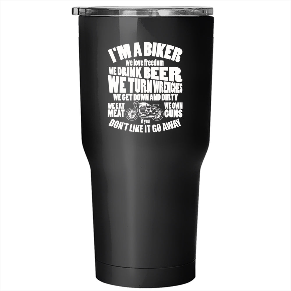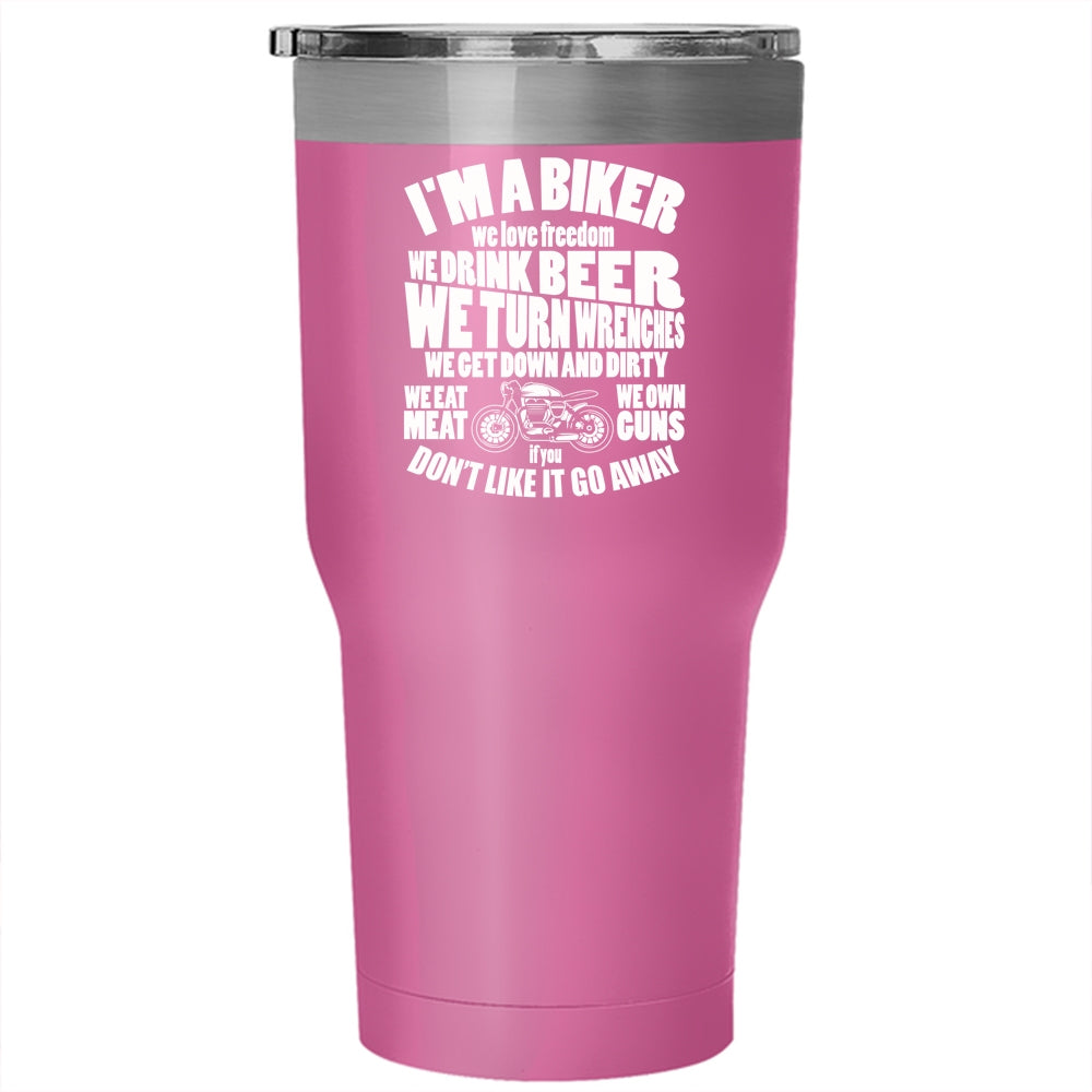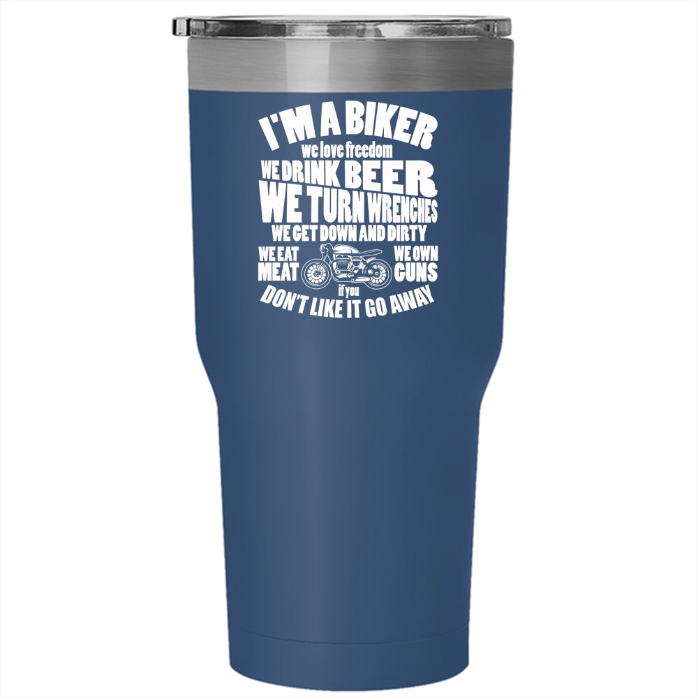 I'm A Biker Tumbler 30 oz Stainless Steel, We Love Freedom We Drink Beer Travel Mug