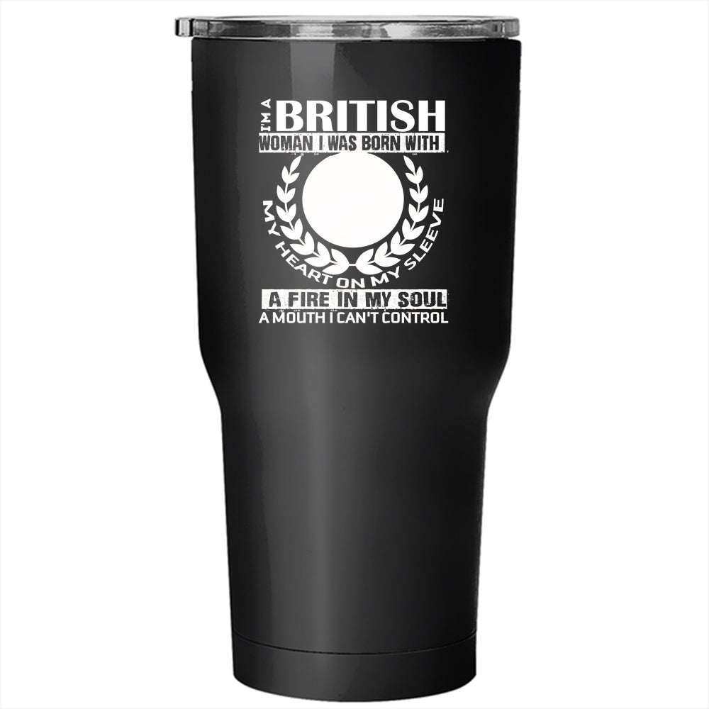 I'm A British Woman Tumbler 30 oz Stainless Steel, I Was Born With My Heart Travel Mug