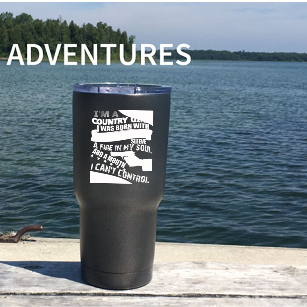 I'm A Country Girl Tumbler 30 oz Stainless Steel, I Was Born With My Heart Travel Mug