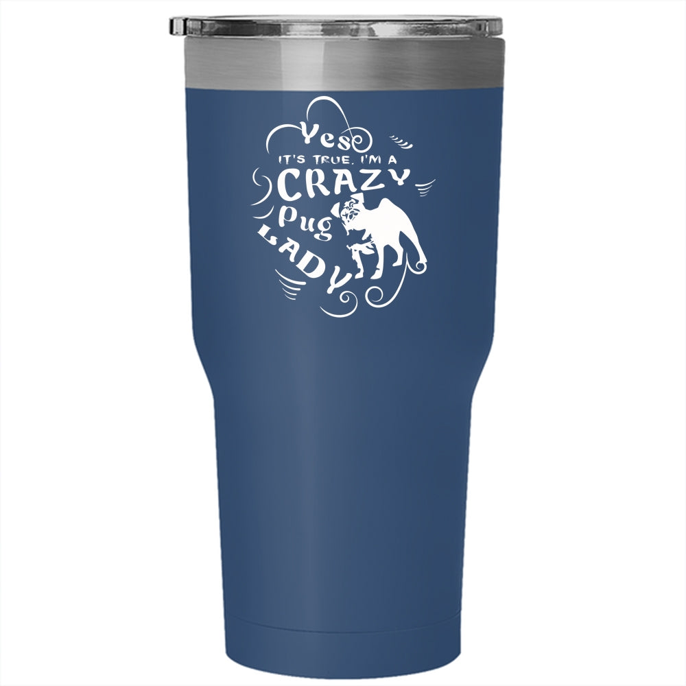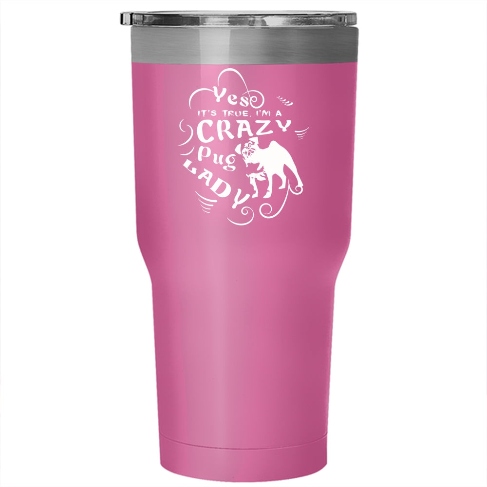 I'm A Crazy Pug Lady Tumbler 30 oz Stainless Steel, I Love Dogs Travel Mug