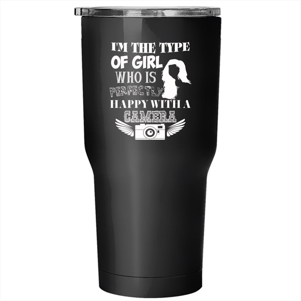 I'm A Girl Who Is Happy With A Camera Tumbler 30 oz Stainless Steel, Pretty Girl Travel Mug